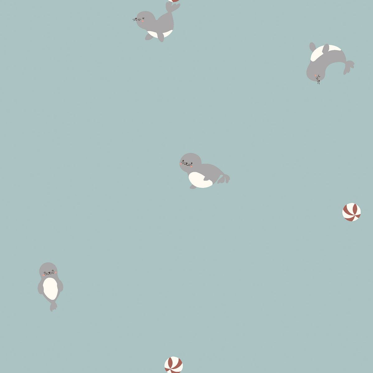 Baumwolljersey Robben mintblau – weicher Kinderstoff mit niedlichen Robben-Motiven