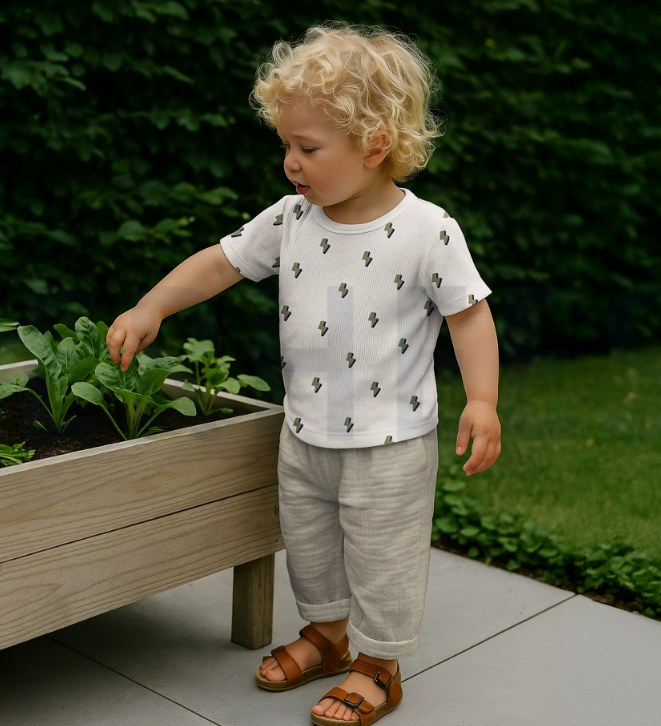 Dank des 5 % Elasthan-Anteils ist der Rib Jersey leicht dehnbar, formstabil und macht jede Bewegung mühelos mit. Ob Baby-, Kinder- oder Erwachsenenmode – dieser Stoff eignet sich perfekt für Kleidung, die bequem sitzen und im Alltag bestehen soll.