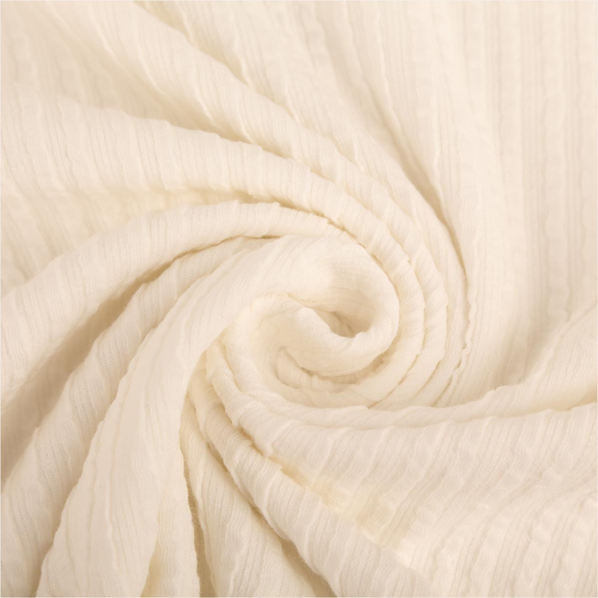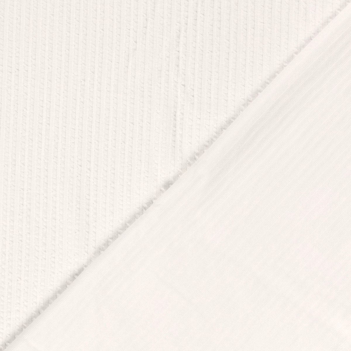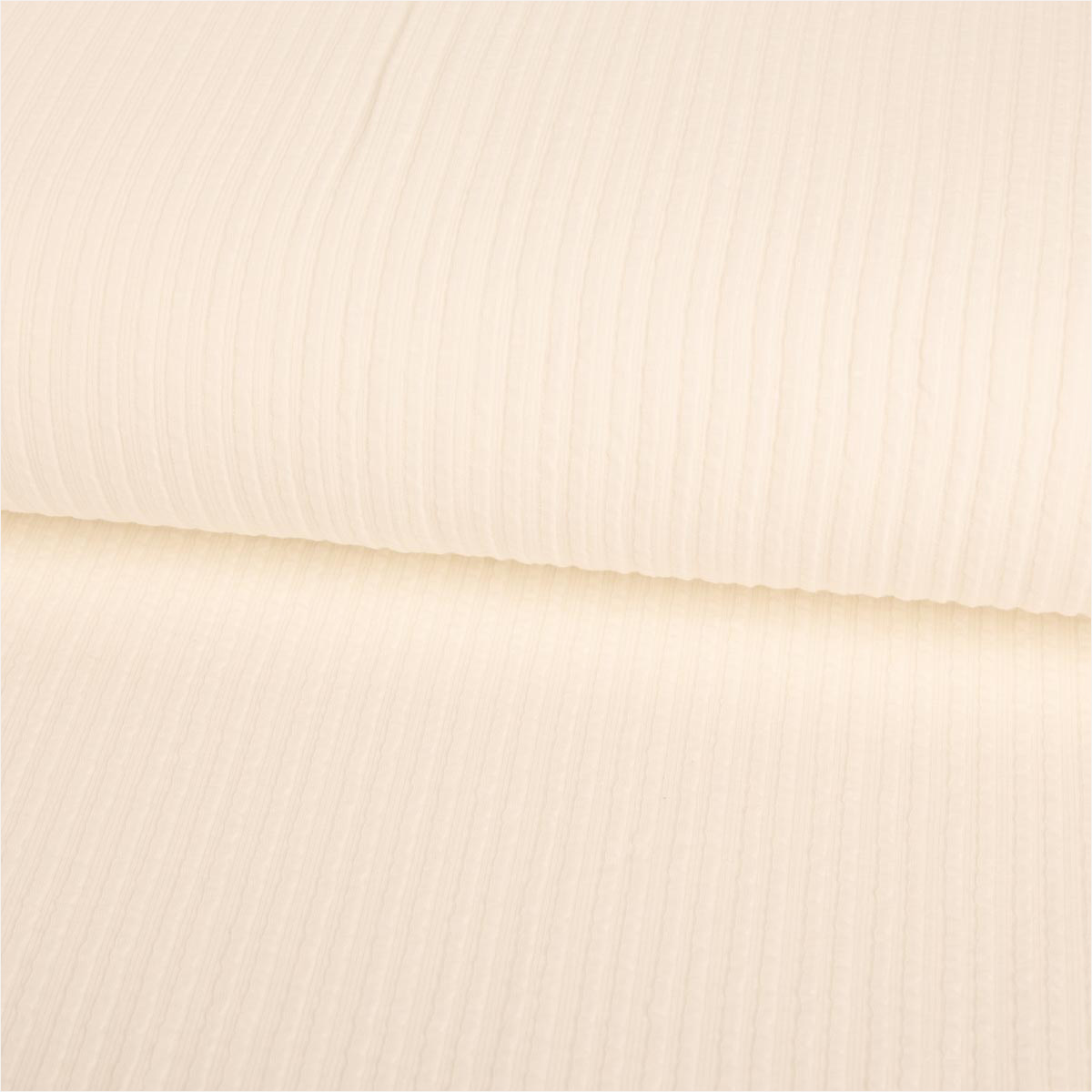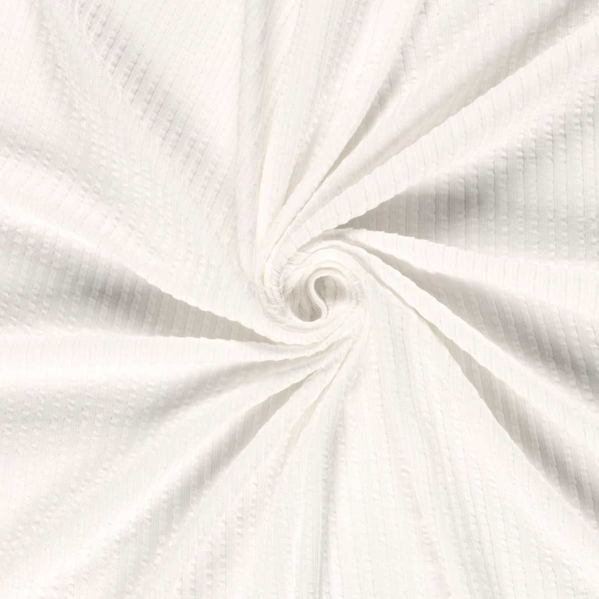 Feiner Ripp-Jacquard Jersey Stoff mit edler Streifenstruktur in Wollweiß