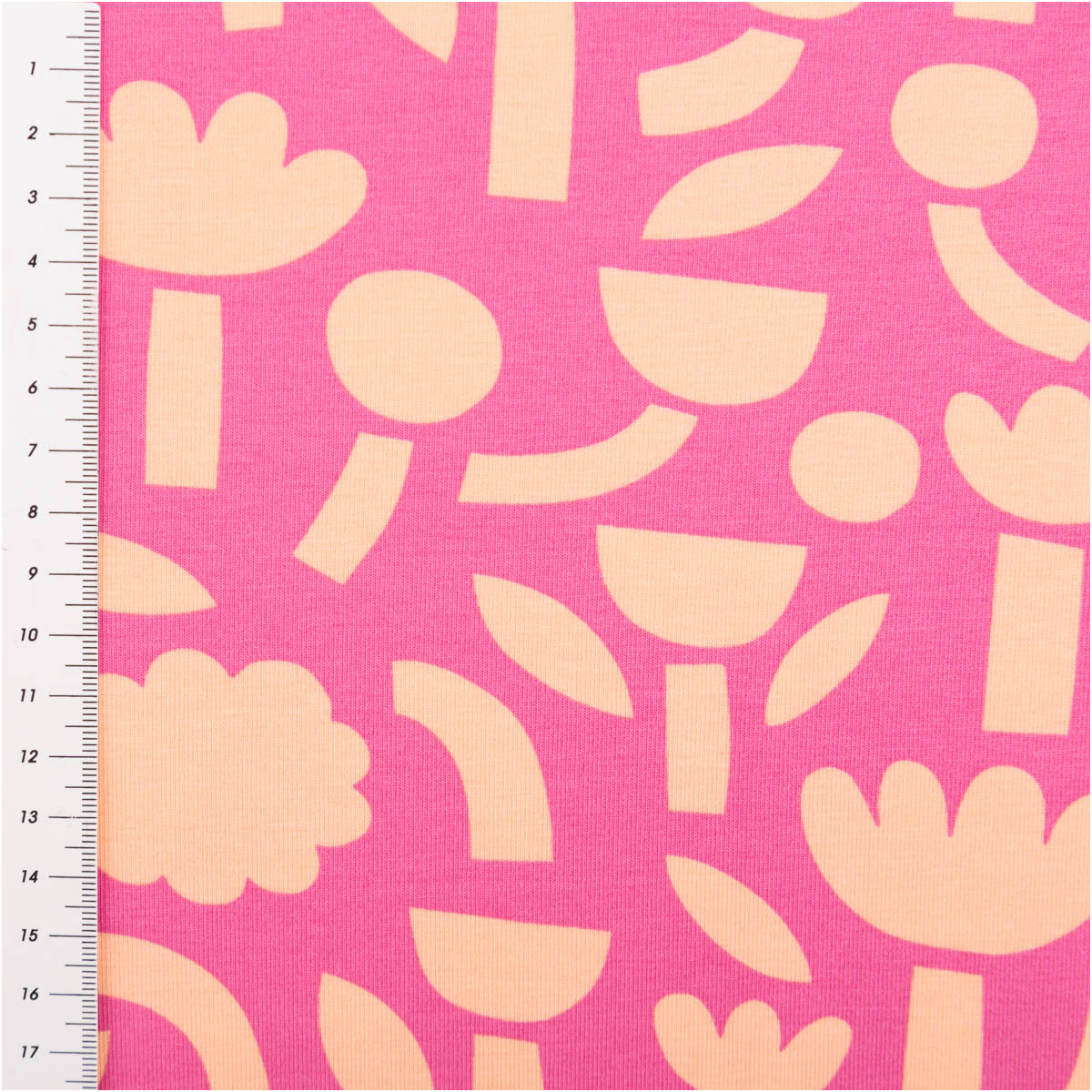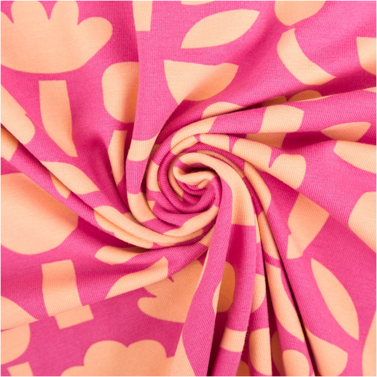 Bio Jersey Stoff Baumwolljersey Blumen Jennifer Bouron fuchsia apricot 1,48 m Breite