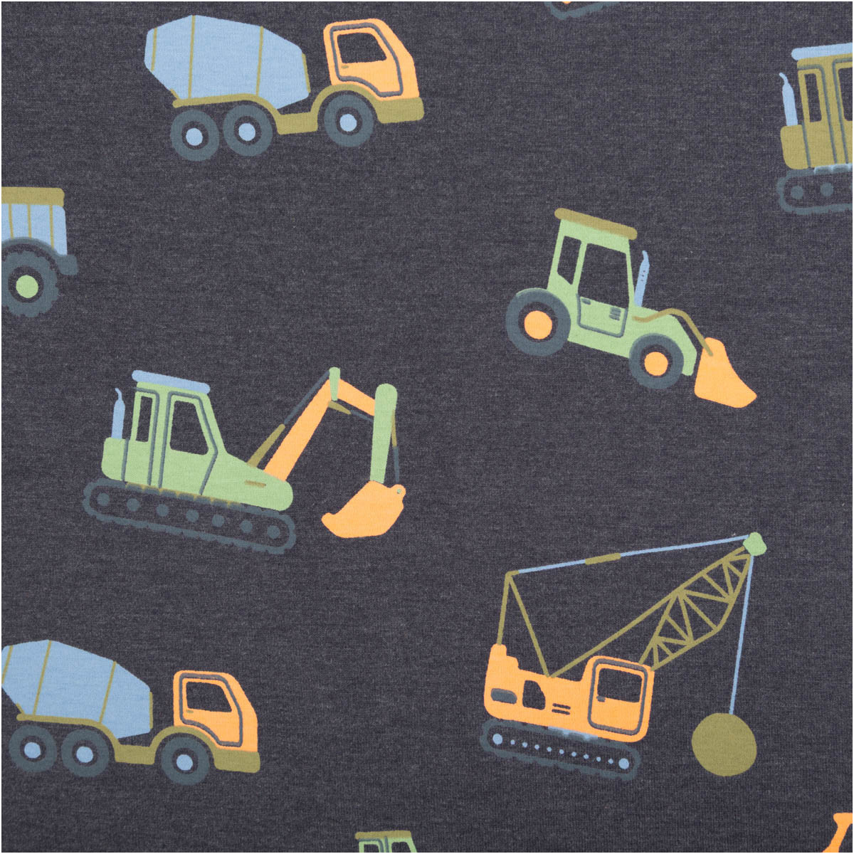 Jersey „Baufahrzeuge“ – meliert marineblau mit neon-bunten Fahrzeugen, 1,48 m breit