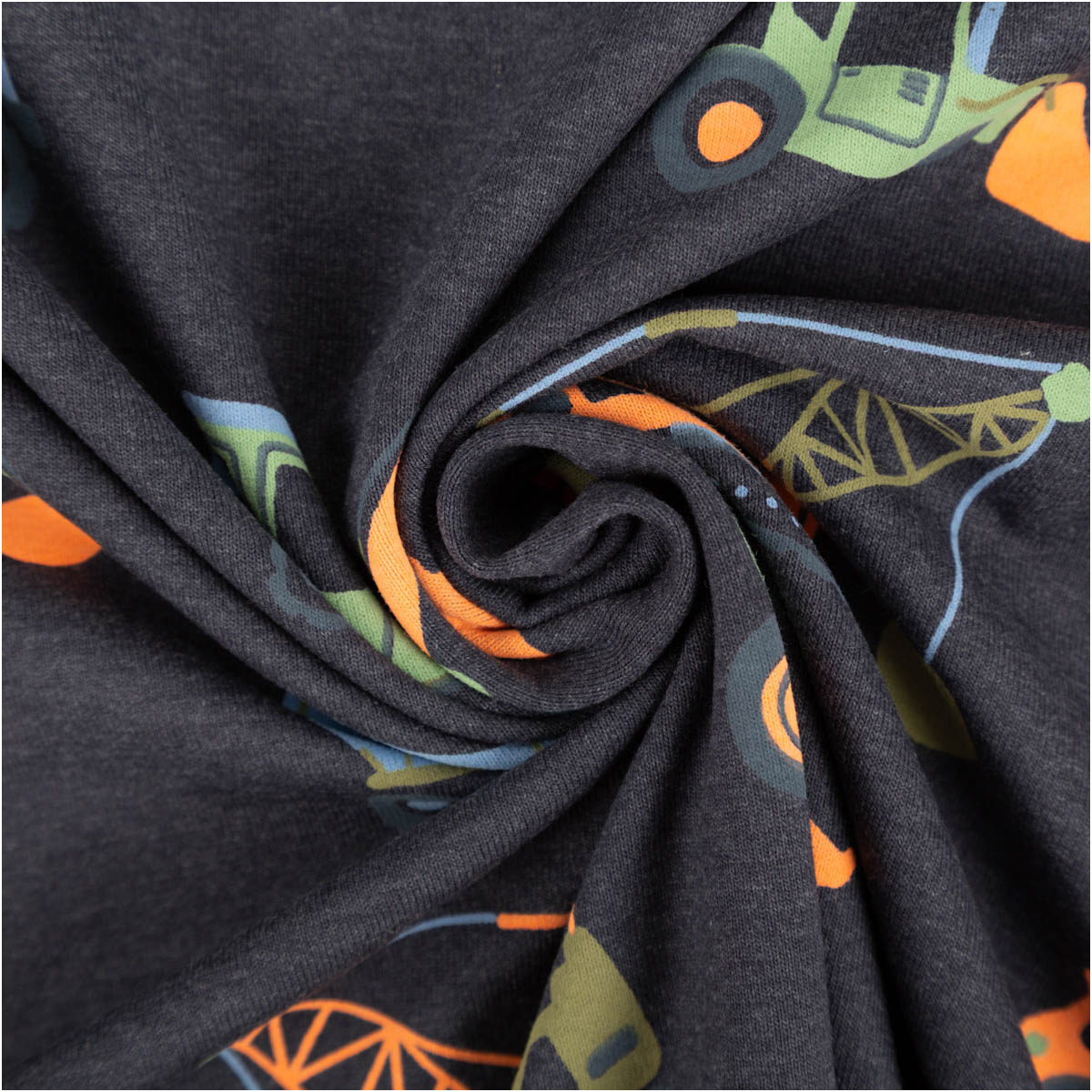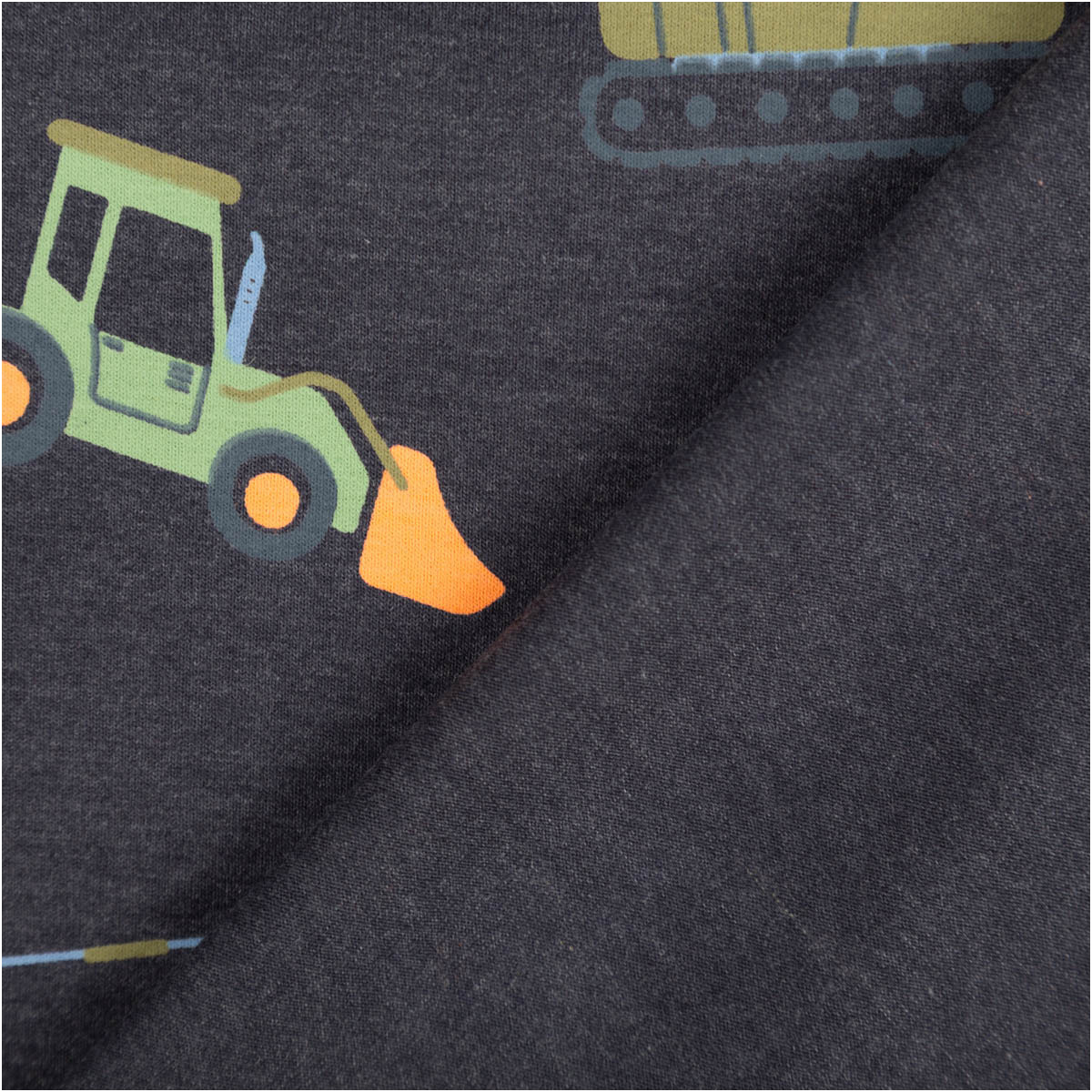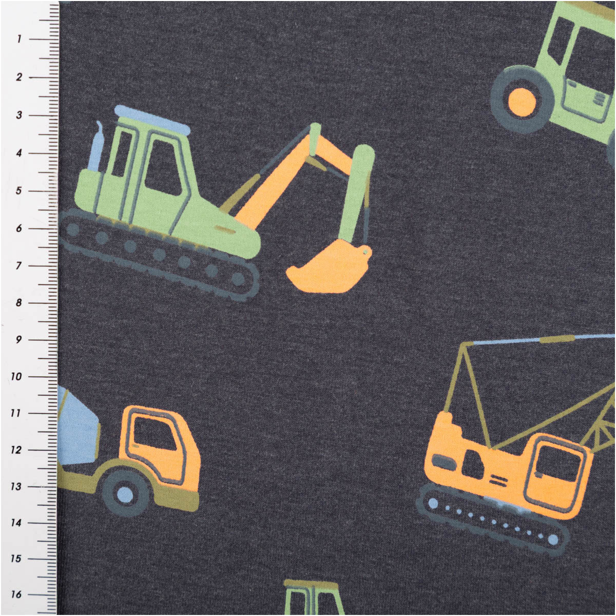Jersey Stoff Baufahrzeuge marineblau meliert neon bunt 1,48 m Breite