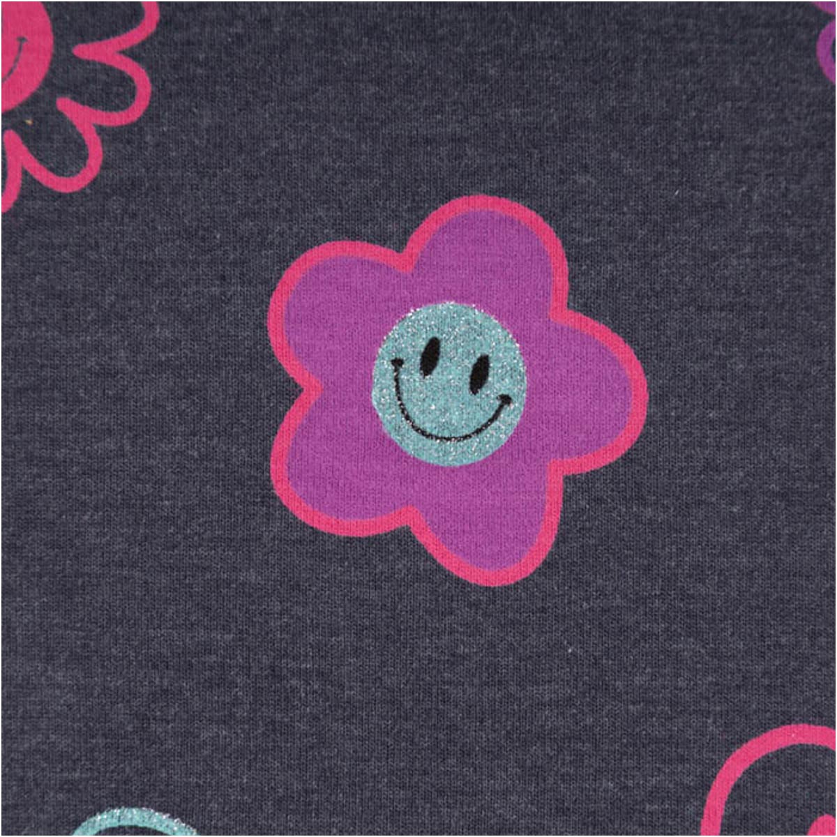 Glizer-Print: Auf dem dunkelblau melierten Hintergrund kommt das fröhliches Happy Faces-Dessin mit Glitzer-Effekten toll zur Geltung