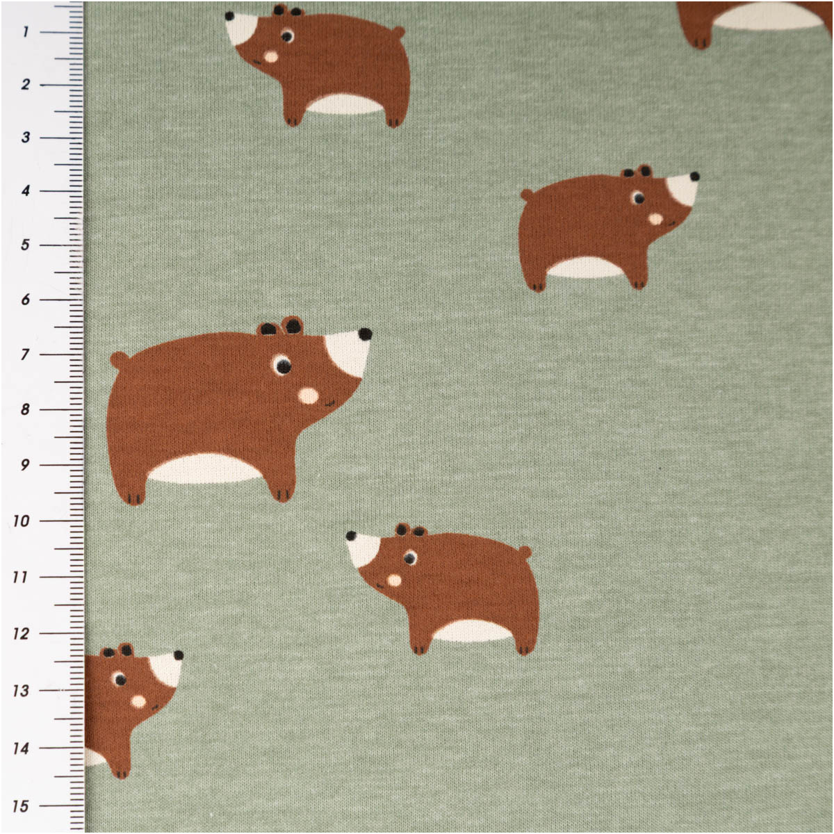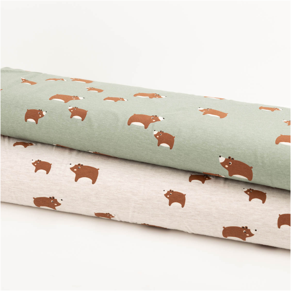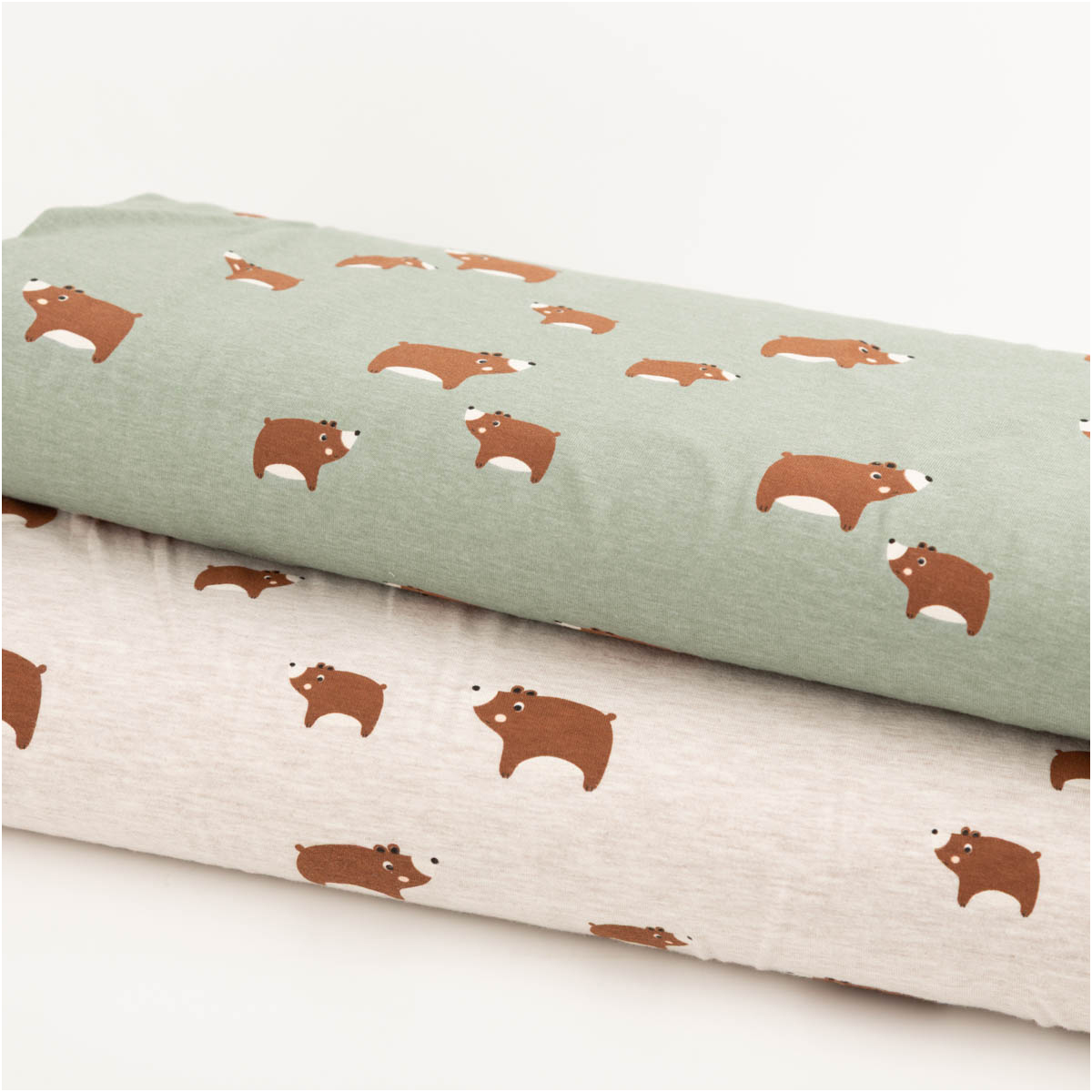 Dieser Baumwolljersey mit niedlichen Bärenmotiven auf mintgrün meliertem Hintergrund bringt eine frische und zugleich ruhige Ausstrahlung in deine Nähprojekte. Die kleinen braunen Bären wirken liebevoll und zeitlos – perfekt für Baby- und Kinderkleidung sowie bequeme Alltagsmode. Als Meterware bietet dir der Stoff maximale Freiheit für deine kreativen Ideen.