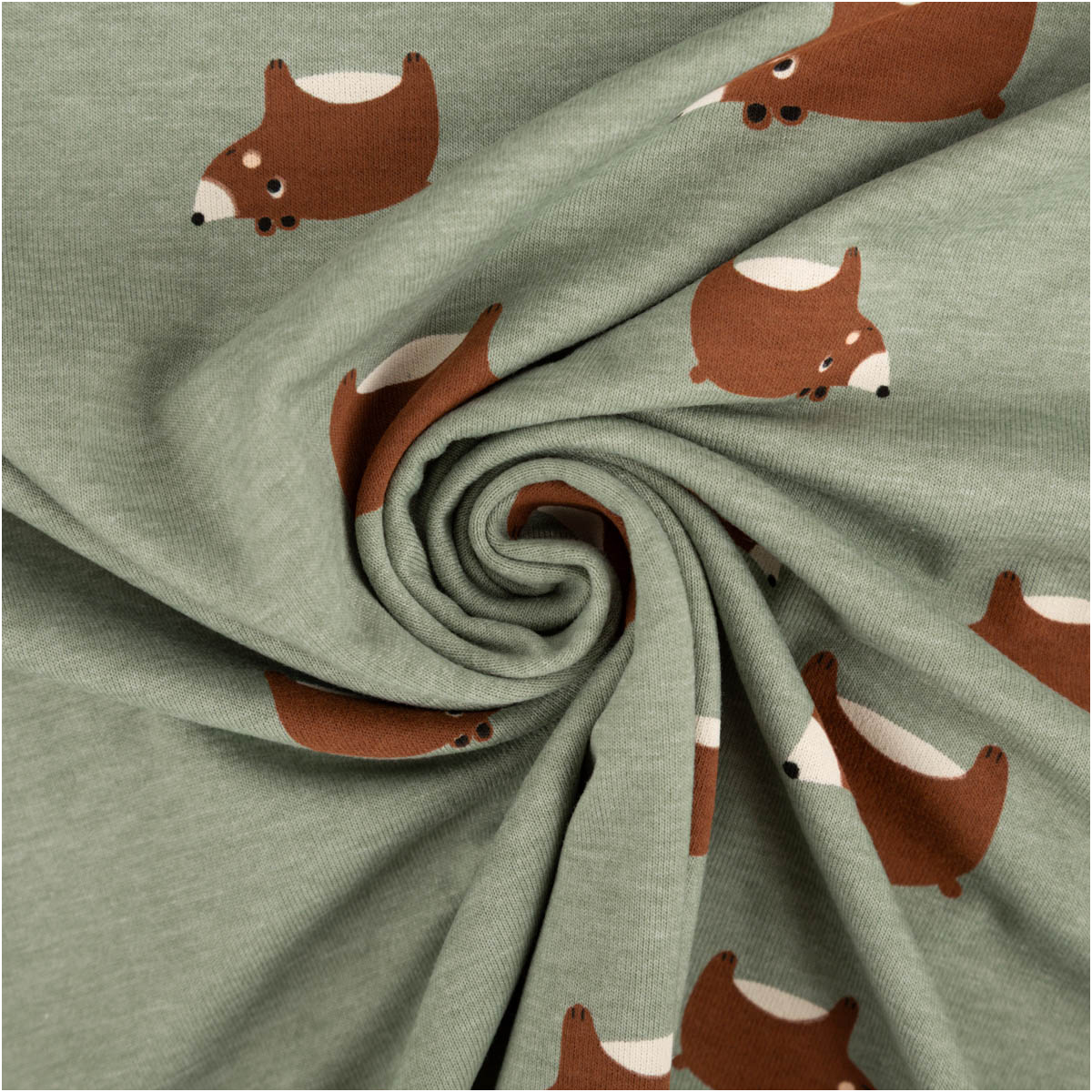 Jersey Stoff Baumwolljersey Bären meliert mintgrün braun 1,48 m Breite