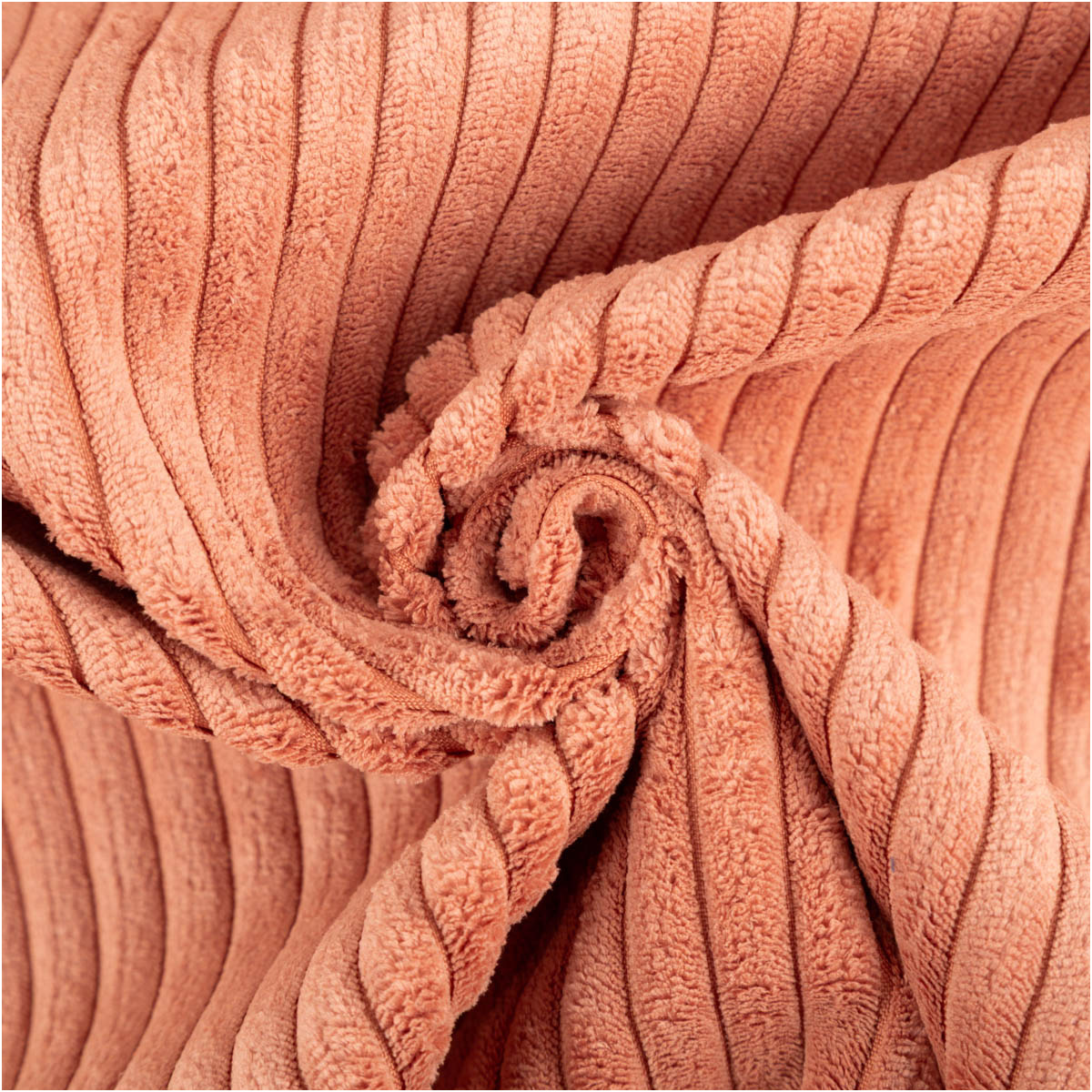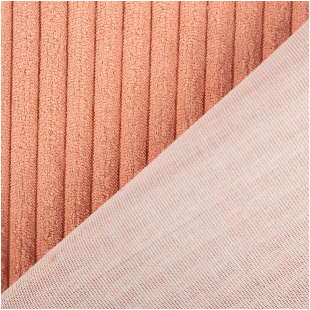 • Weicher Breitcord in lachsrosa mit 1 cm Rippen und hohem Flor für eine angenehm flauschige Haptik
