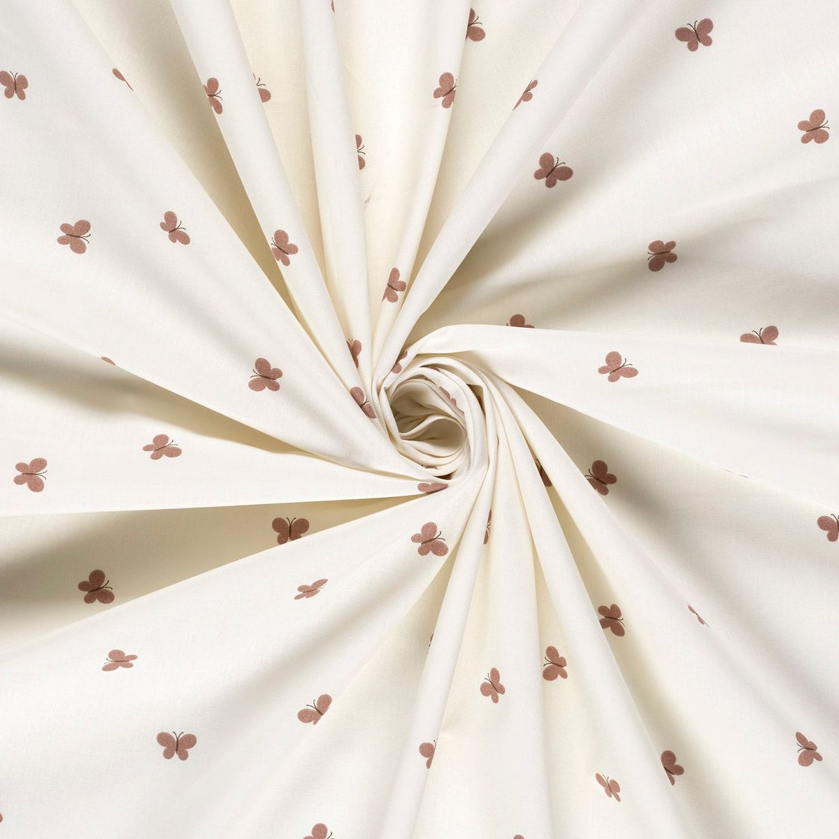 Baumwollstoff Popeline Stoff Schmetterlinge wollweiß mauve 1,45m Breite