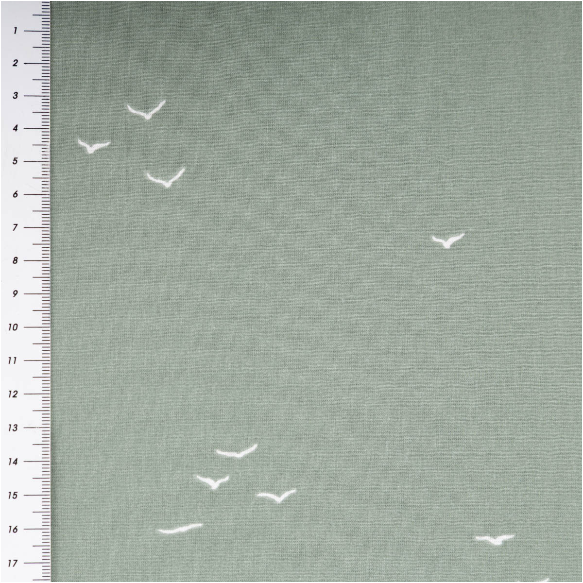 Baumwollstoff Popeline Vögel in Grün – vielseitig & hochwertig