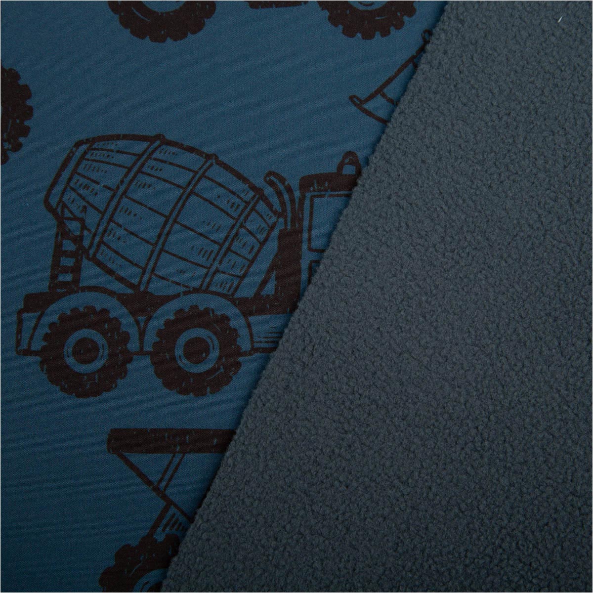 Softshell mit Fleece-Innenseite – Baufahrzeuge blau/schwarz, 1,45 m Breite