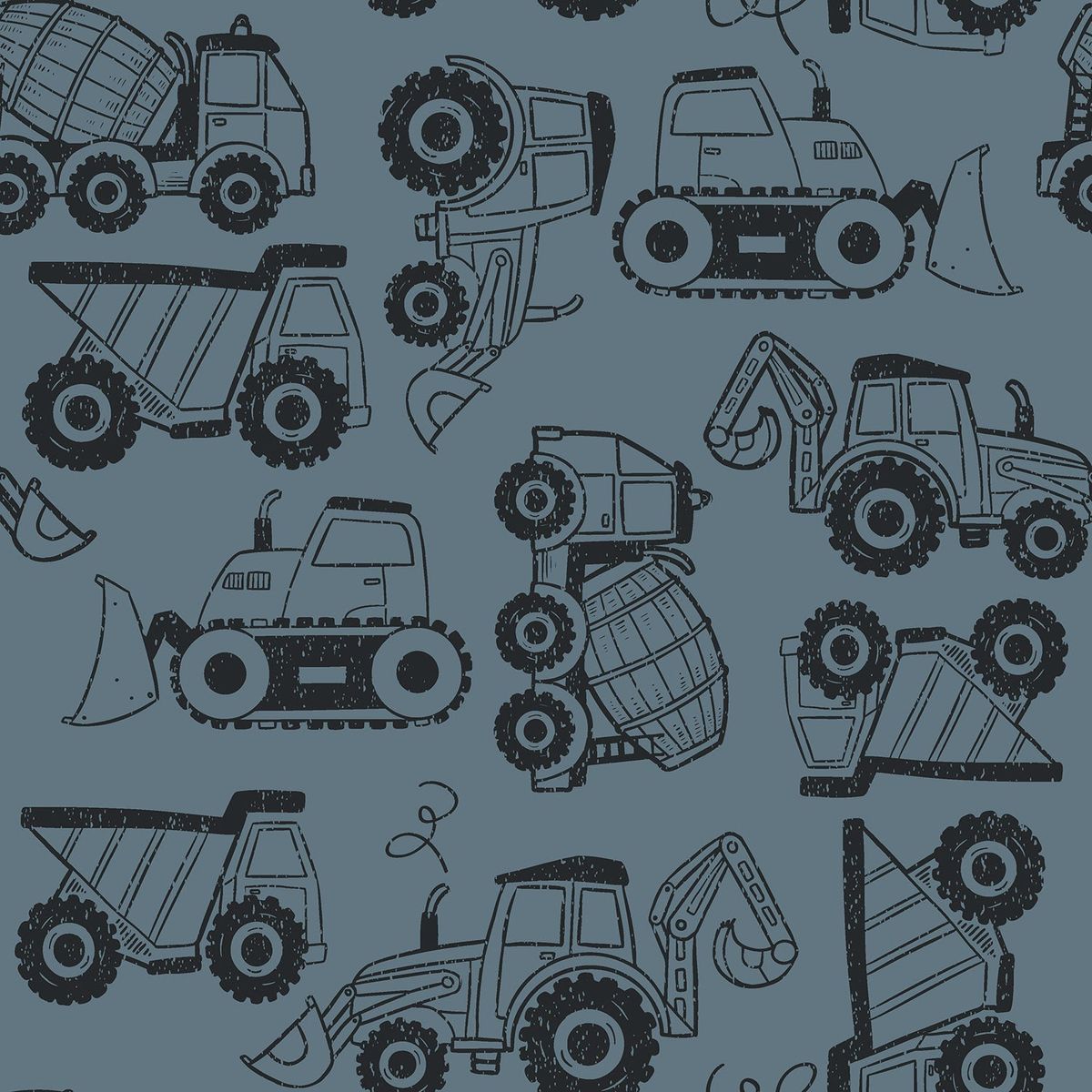 Design: Baufahrzeuge, blau/schwarz (Digitaldruck)