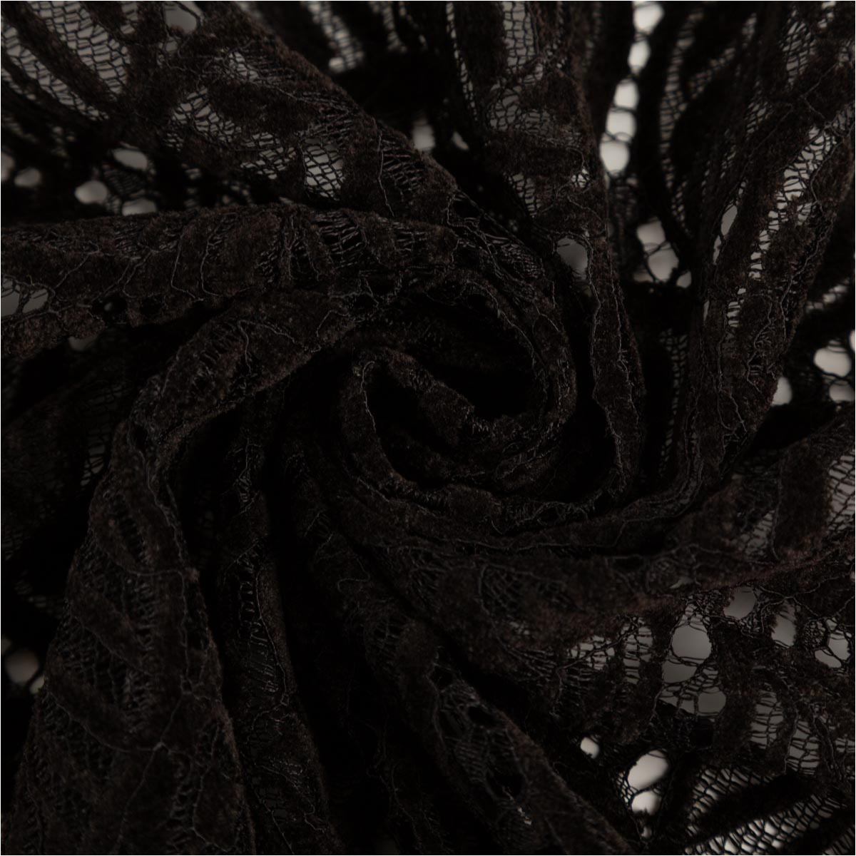 Spitze mit Chenille Blätterdessin Meterware schwarz 150cm breit