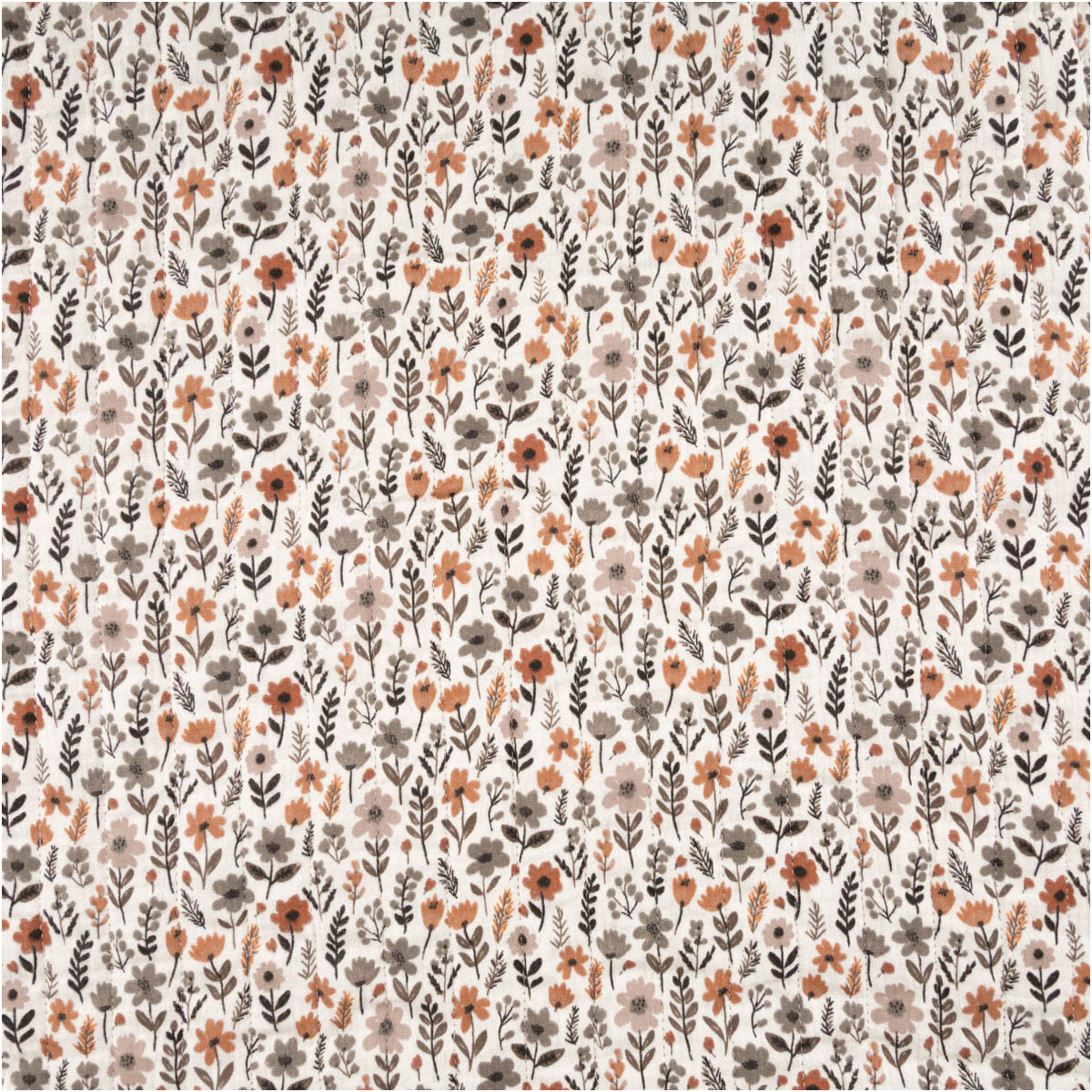 Musselin Stoff Baumwolle Steppstoff Maddy Doubleface Blumen braun wollweiß 1,30m Breite