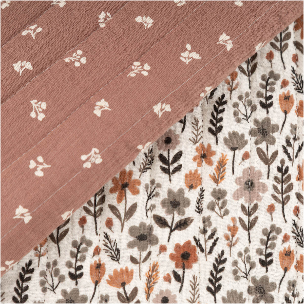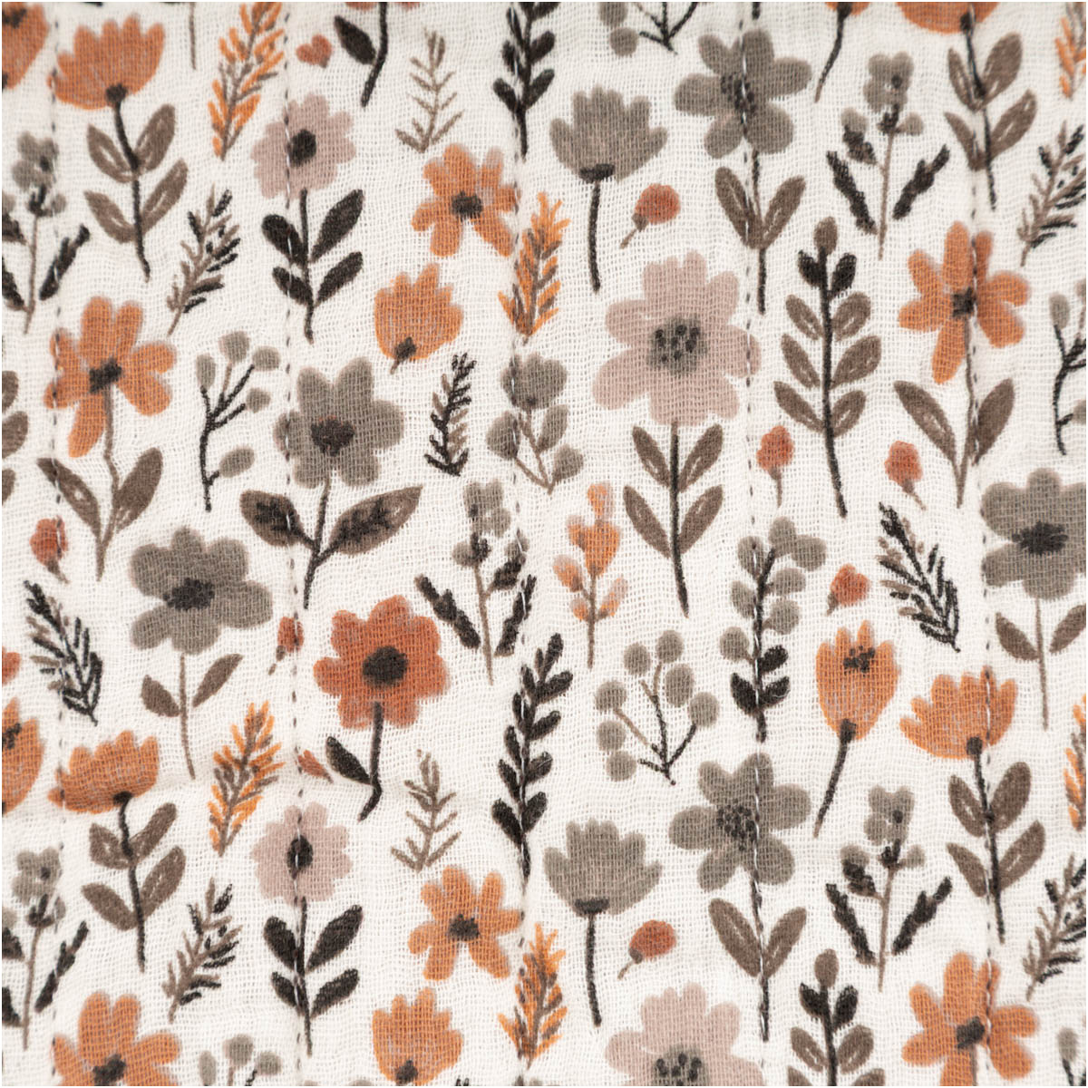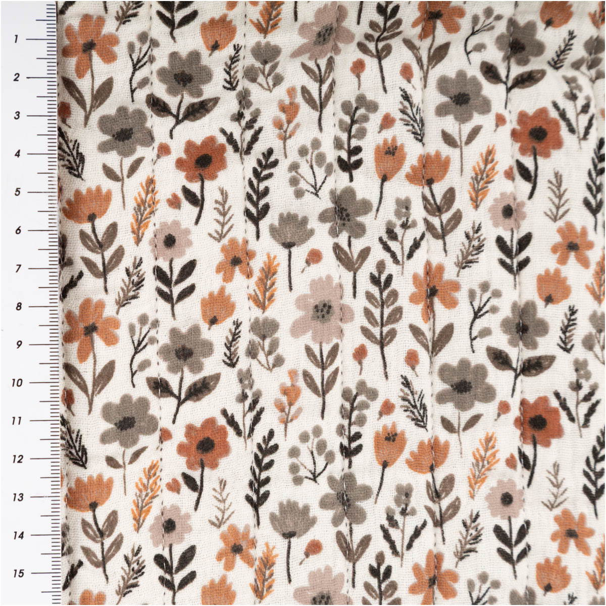 Musselin Steppstoff „Maddy“ Doubleface – Blumen braun/wollweiß, 130 cm
