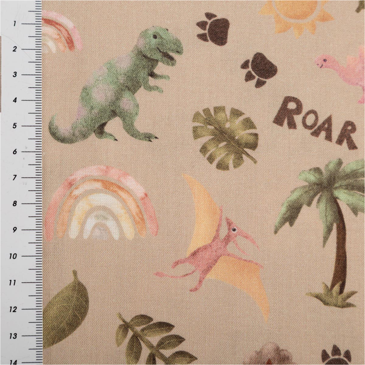 Baumwollstoff Dinosaurier Digitaldruck beige grün rosa 1,48m Breite