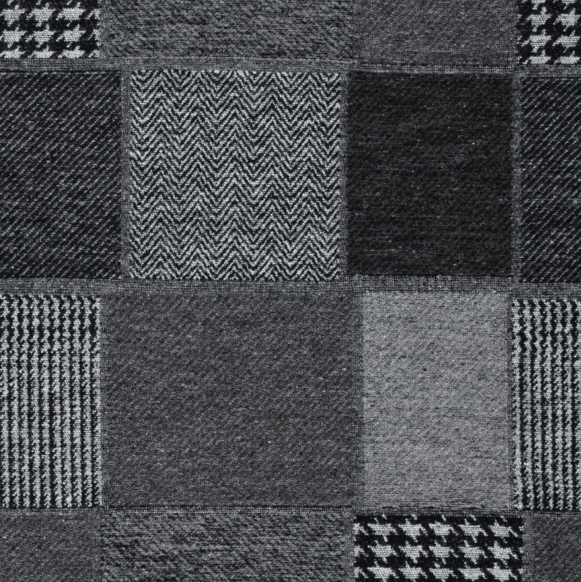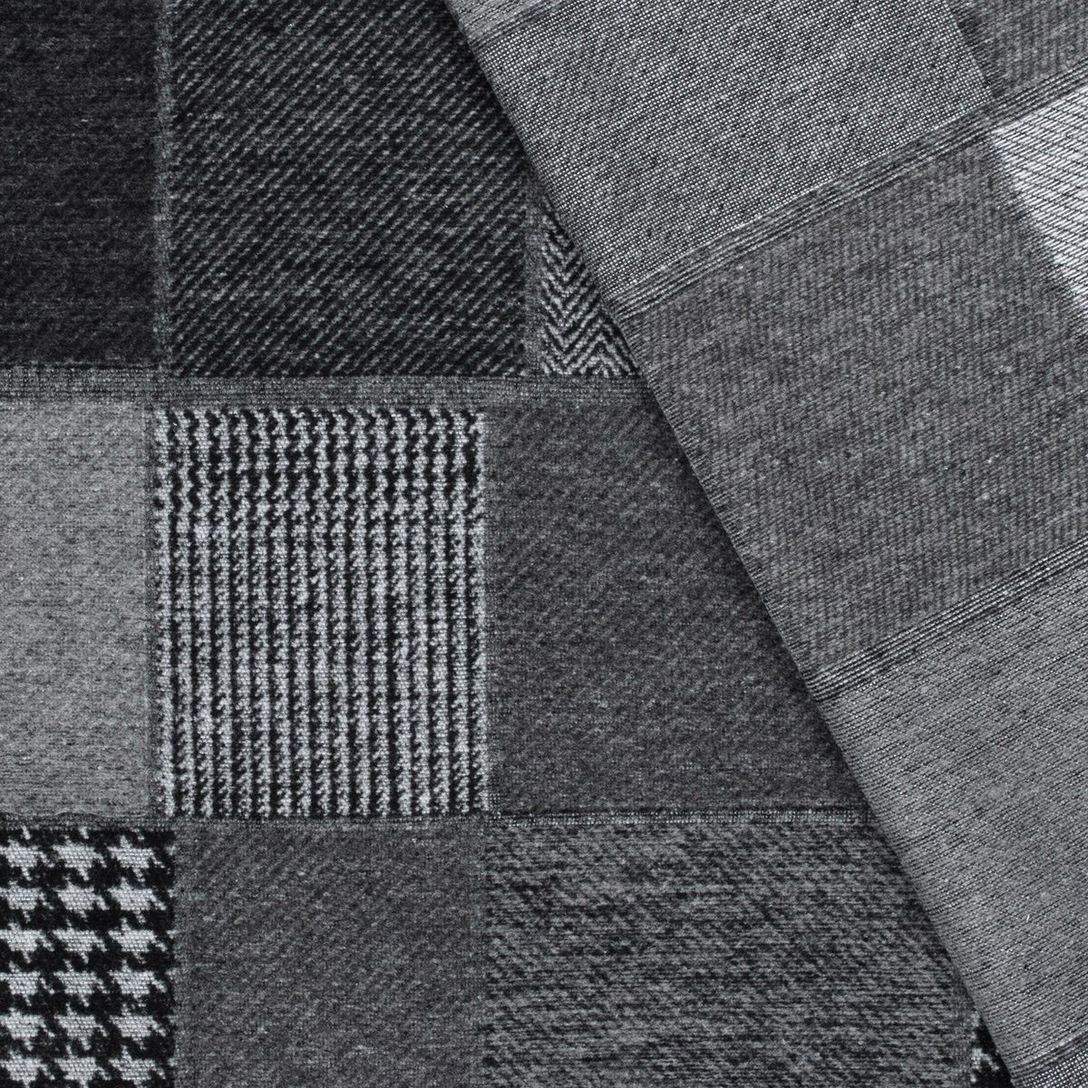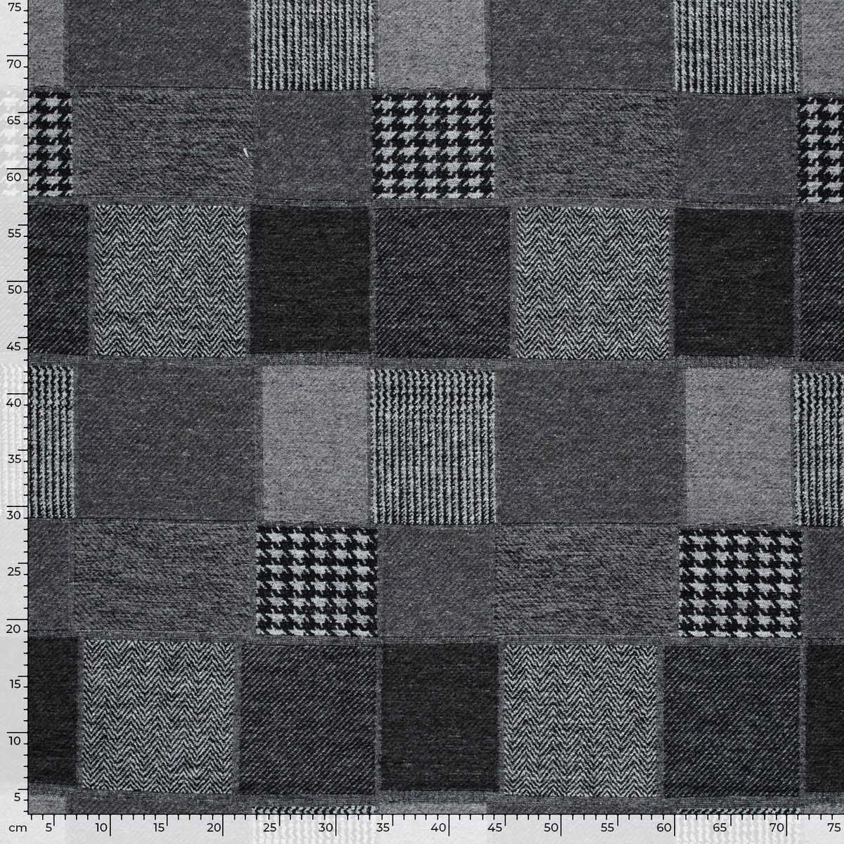 Mantelstoff Jacquard Patchwork-Karos grau – gebürstet & wärmend (145 cm)