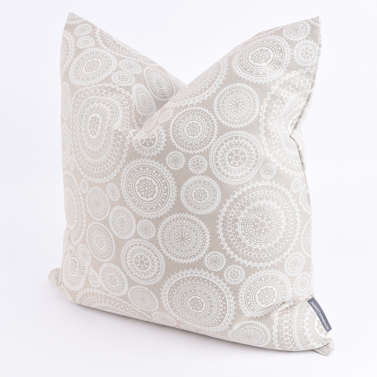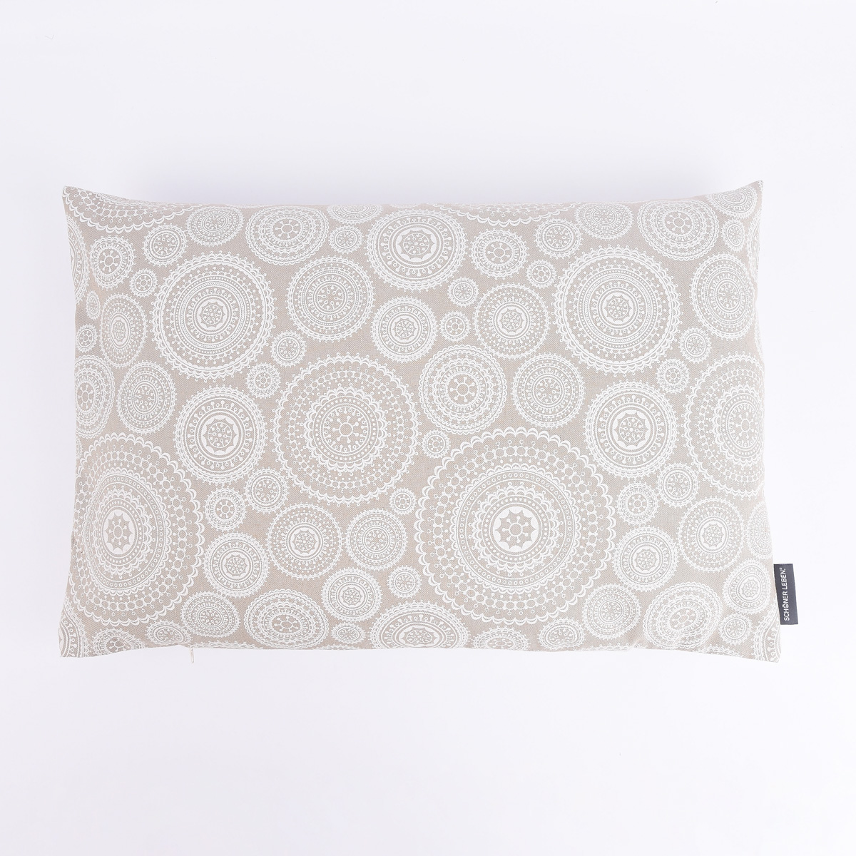 Das harmonische Mandala-Muster kommt auf dem naturfarbigen Hintergrund besonders gut zur Geltung und sorgt für eine angenehme Wohnatmosphäre.