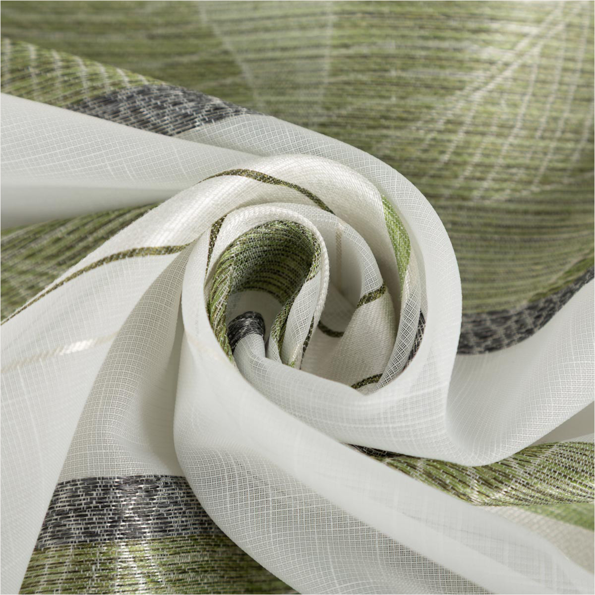 Gardinenstoff Dekostoff halbtransparent Jacquard-Streifen Blätter grün – 1,50 m Breite