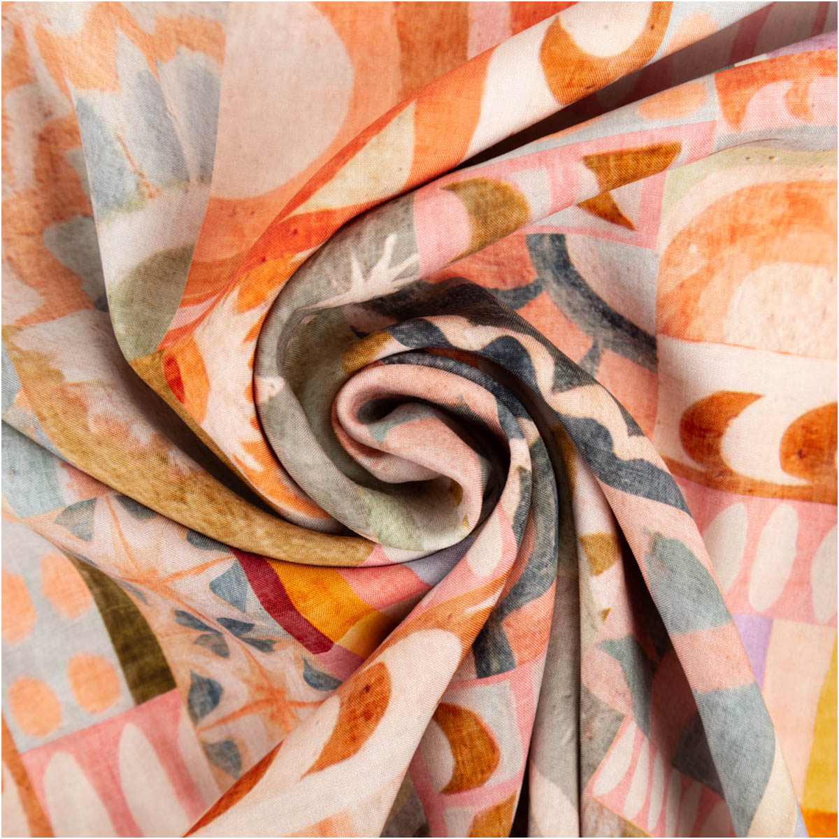 Viskose Stoff Lenzing EcoVero™ Abstrakt Orange Grün 140 cm Breite