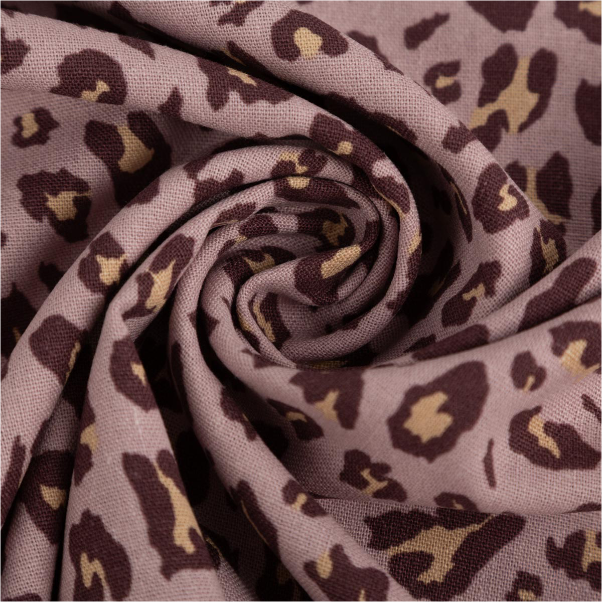 Viskose Stoff mit 30% Leinen Leo rosa creme aubergine 1,34cm Breite