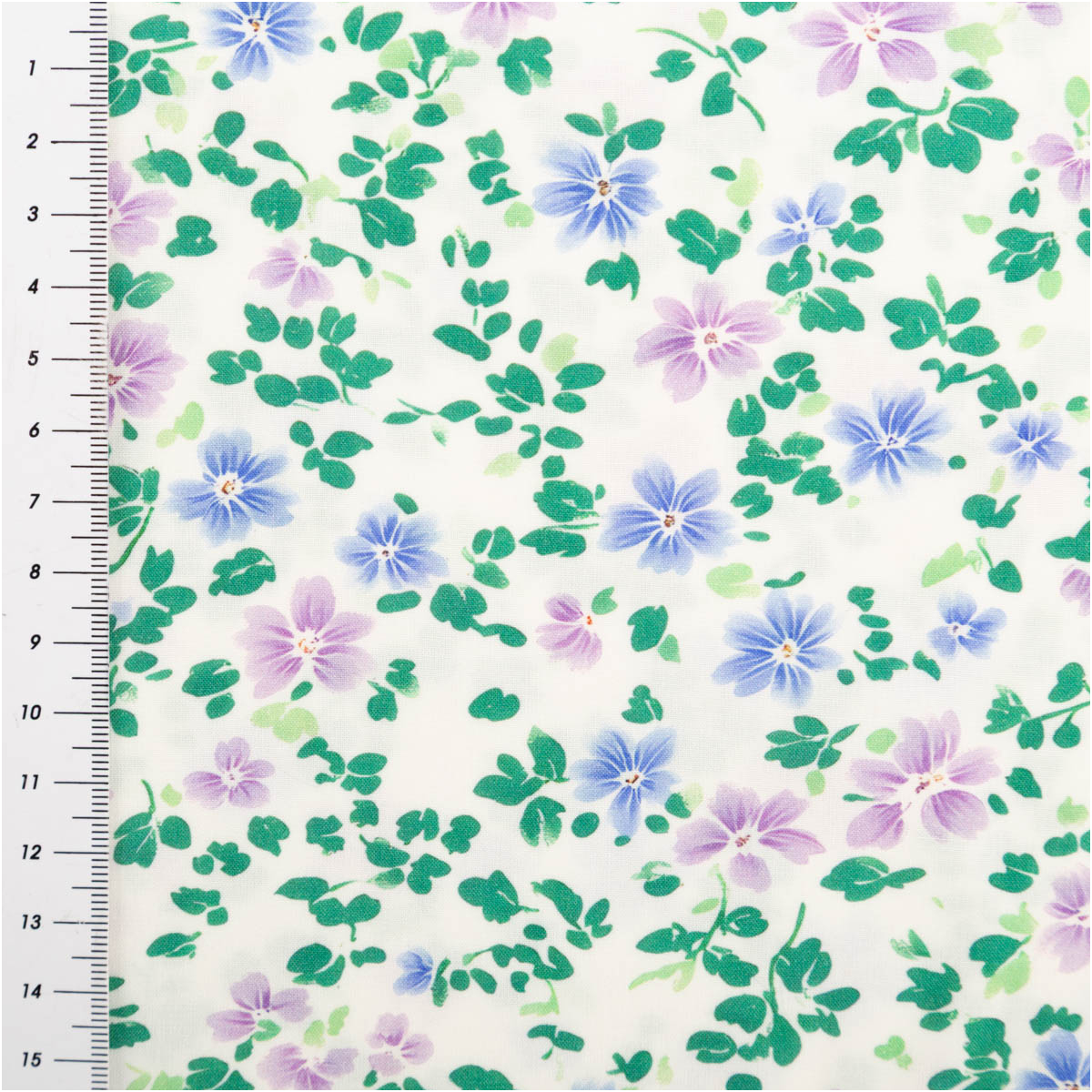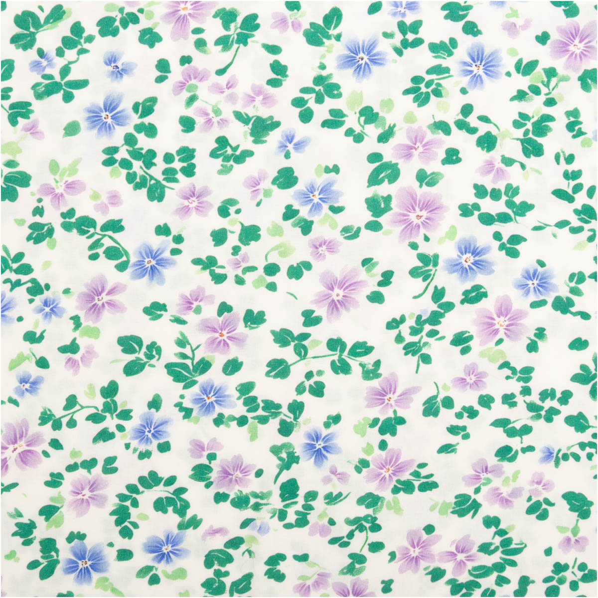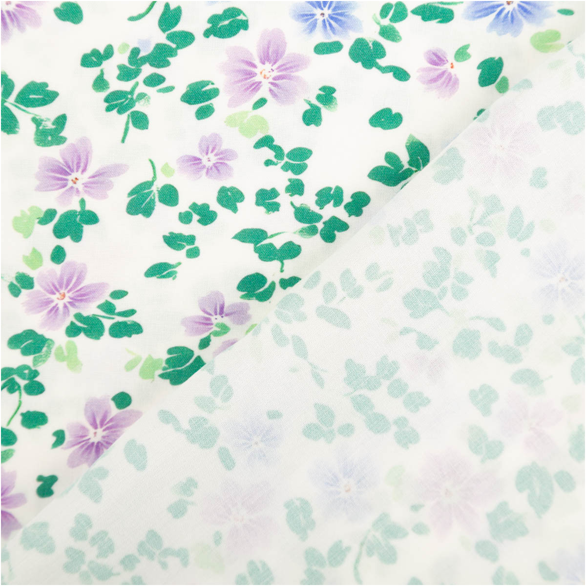 Das kleine florale Muster verleiht dem Stoff eine leichte, natürliche Ausstrahlung. Die Farbkombination aus Weiß, Grün, Blau und Lila wirkt harmonisch, lebendig und vielseitig kombinierbar. Dadurch kannst du sowohl alltagstaugliche als auch romantische oder verspielte Kleidungsstücke daraus nähen.