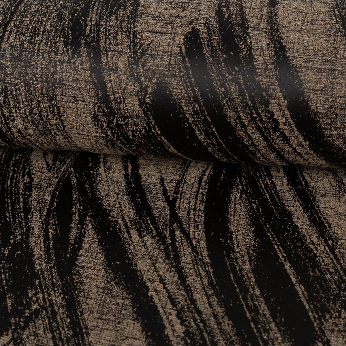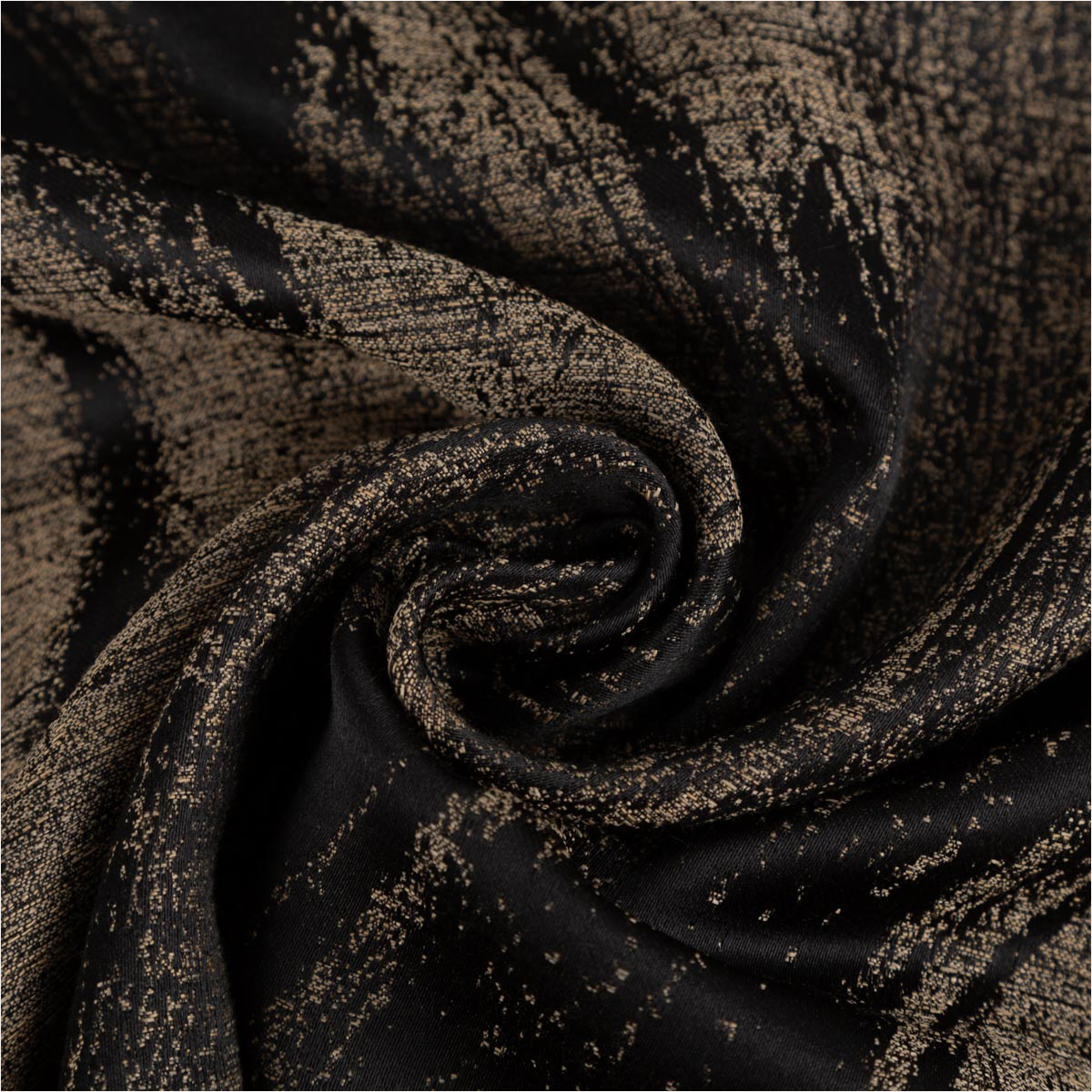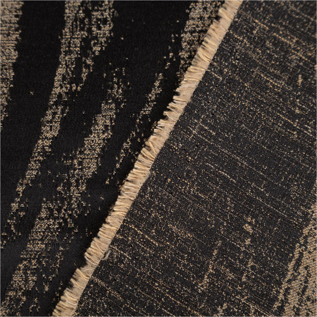 Der hochwertige Jacquard Stoff in Schwarz und Goldtönen wirkt elegant und modern zugleich und passt zu vielen modernen Einrichtungsstilen.