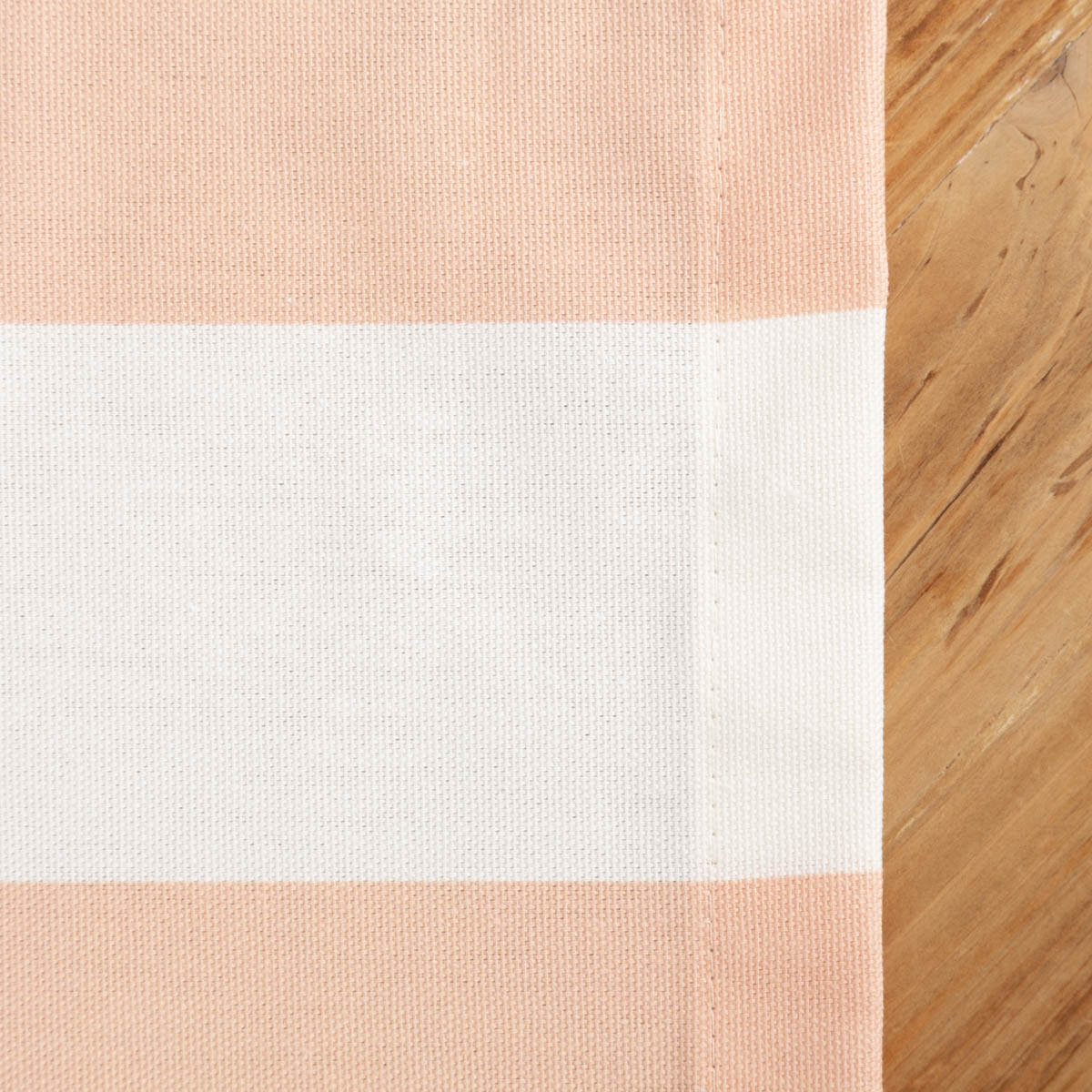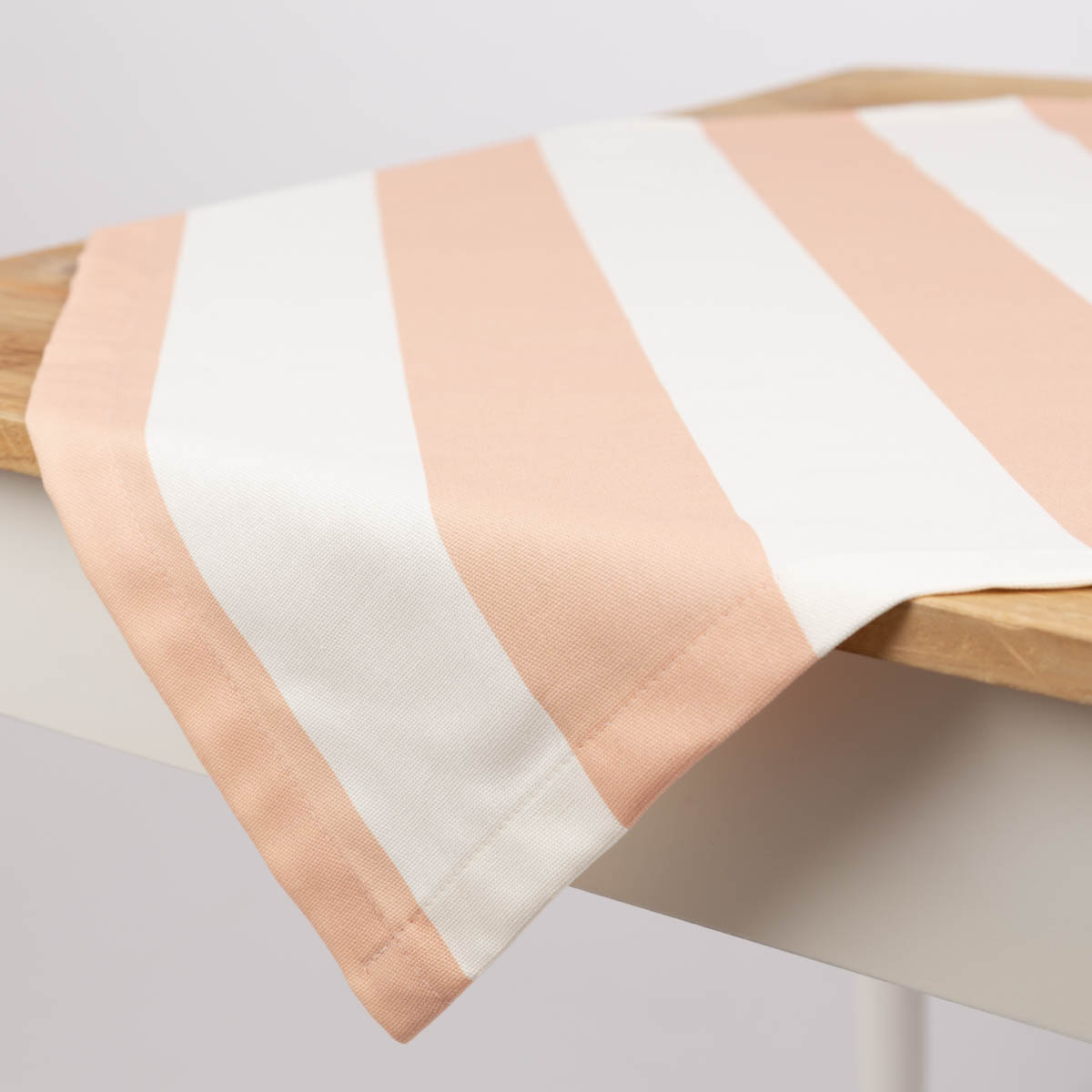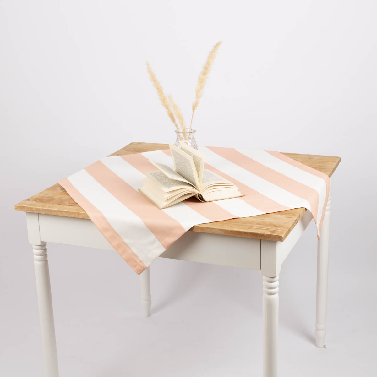 Tischdecke aus Baumwolle mit Streifen in Peach und Ecru – handgefertigt für dein Zuhause