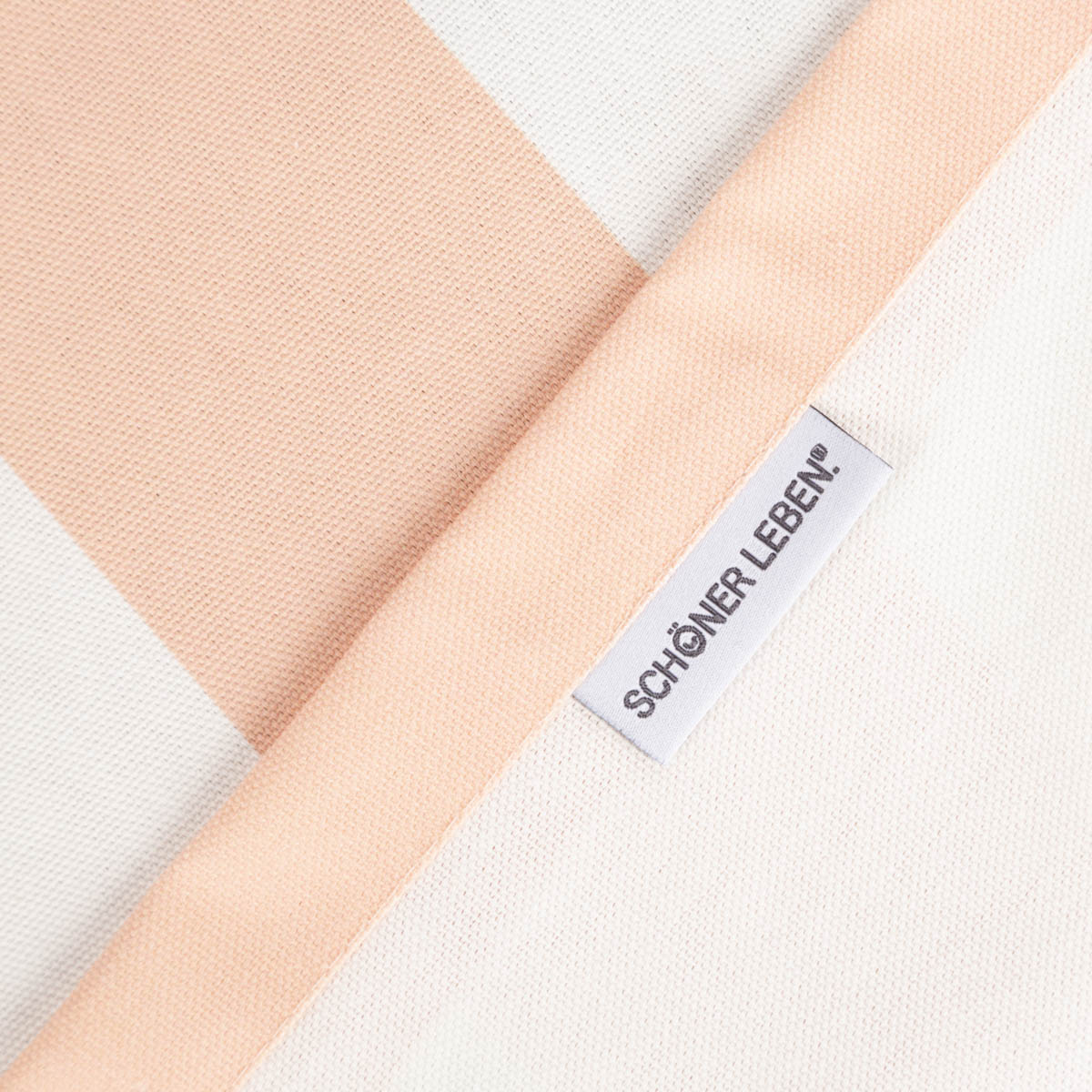 Die zarten Streifen in Peach und Ecru schaffen ein frisches, harmonisches Ambiente. Durch hochwertigen Digitaldruck leuchten die Farben besonders klar und gleichmäßig.