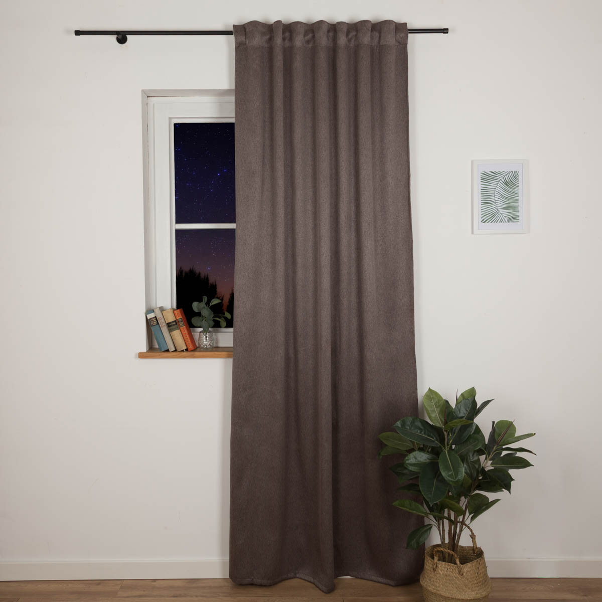 Moderner Verdunkelungsvorhang Barcelona in Braun meliert mit Schlaufenband in der Größe 245x135cm
