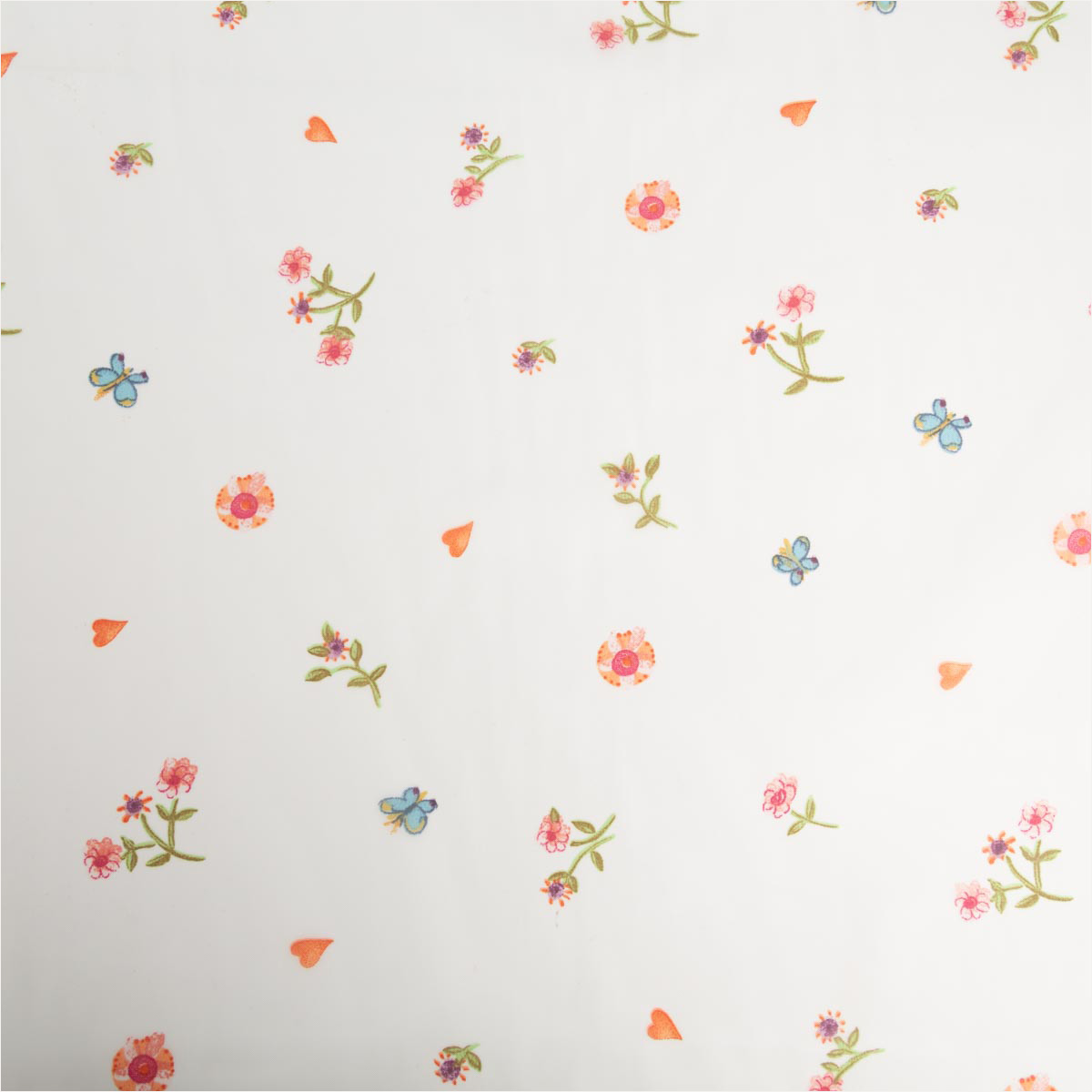Dieser Gardinenstoff Voile aus der Villa Coppenrath Lilifee Kollektion von Rasch Textil begeistert mit einem zarten, liebevollen Dessin aus Blumen, Schmetterlingen und Herzchen auf weißem Grund. Der Stoff ist transparent, leicht und duftig und bringt eine freundliche, verspielte Atmosphäre in deine Räume.