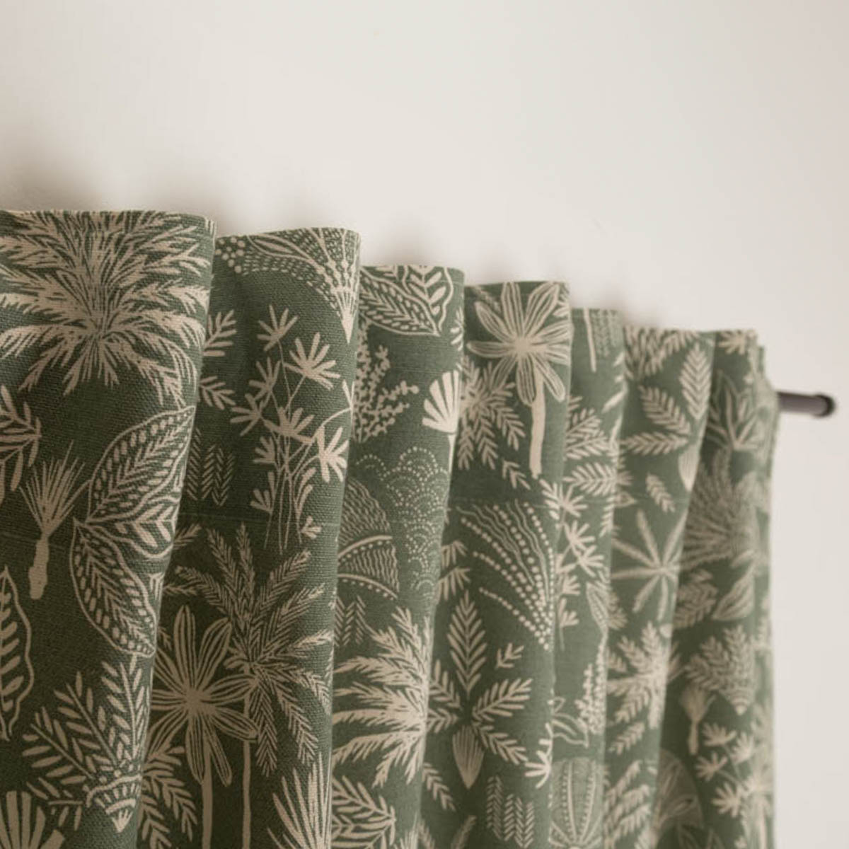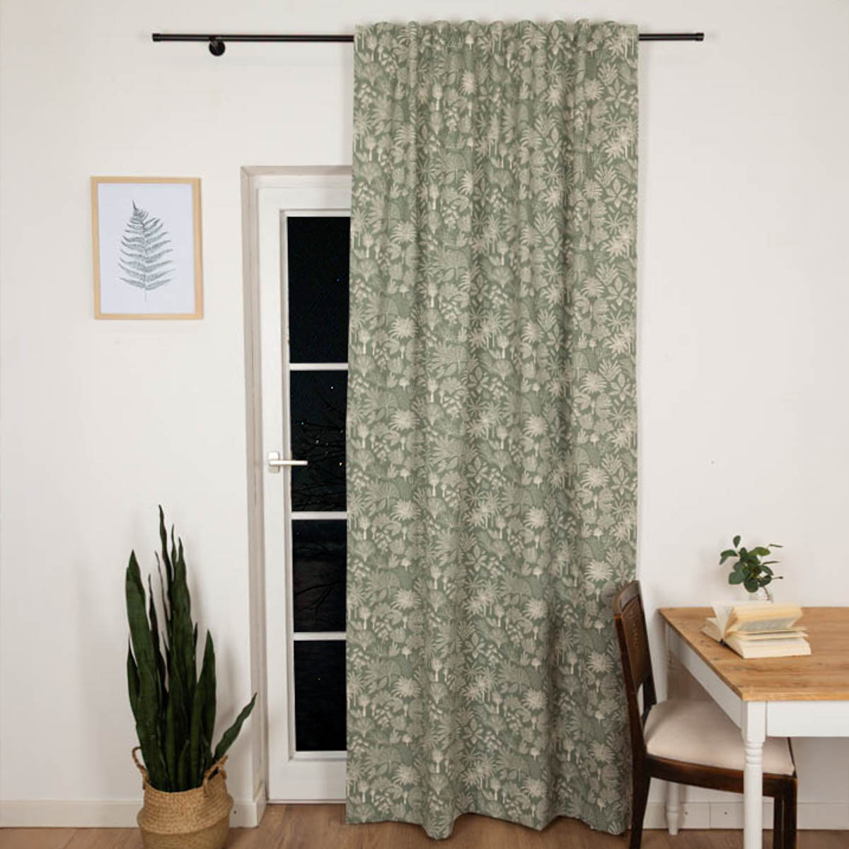 Der blickdichte Vorhang mit Palmen und Blättern in Salbei-Grün aus unserer SCHÖNER LEBEN. Kollektion ist ein einzigartiger Hingucker für deine Fenster. Der Vorhang Agave in dezentem Salbei-Grün mit französischem Dessin bringt natürlichen Charme in dein Zuhause. Der Vorhang zeichnet sich durch seine robuste Halb-Panamabindung und seinen hohen Baumwollanteil von 88% aus, der ihm eine griffige Haptik und den natürlichen Look verleiht. Dank der 12% Polyesterbeimischung ist der Stoff besonders pflegeleicht und langlebig. Das natürliche Dessin mit exotischen Palmen, Blättern und Pflanzen verleihen dem Vorhang eine harmonische Ausstrahlung mit dezent exotischem Touch.