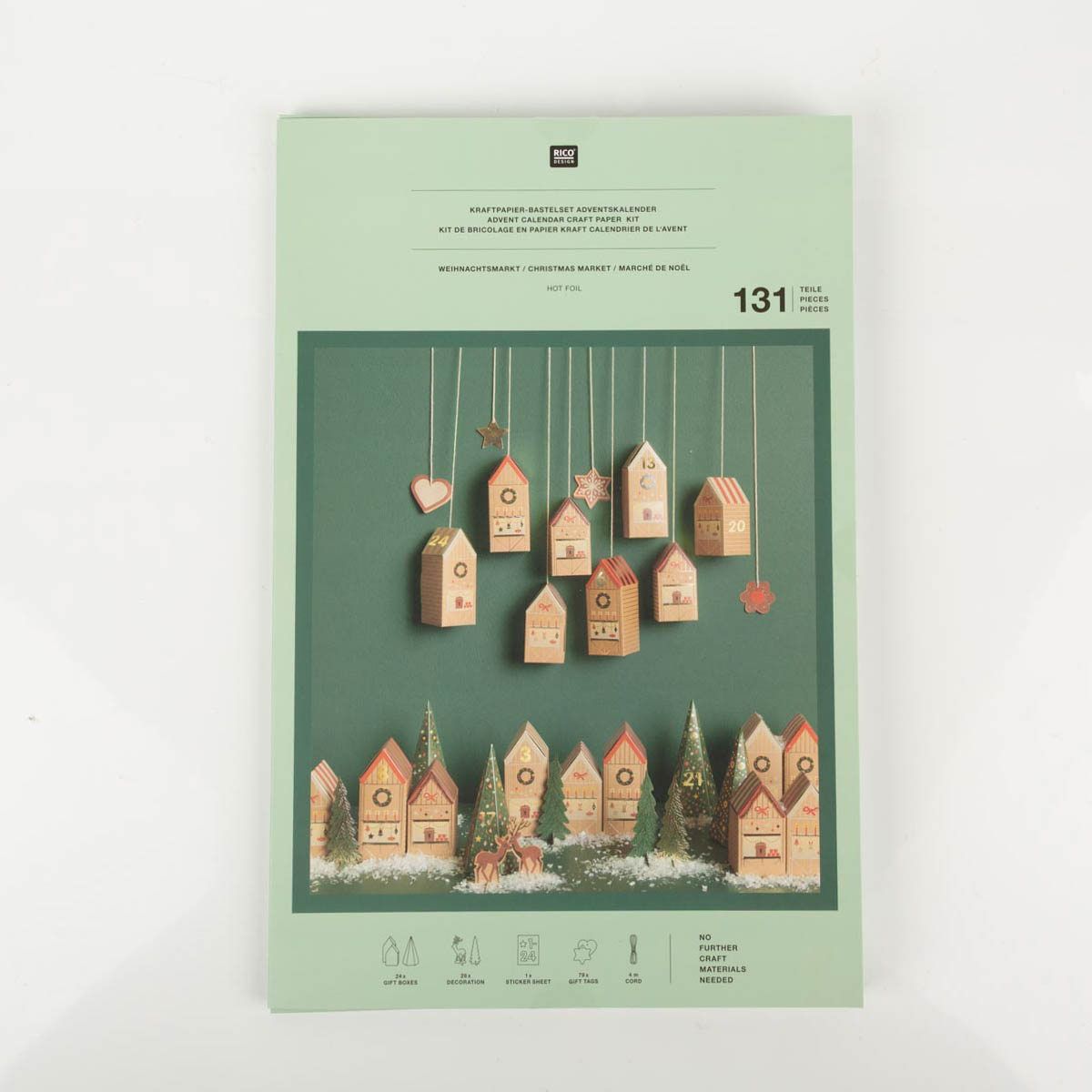 Rico Design Adventskalender Weihnachtsmarkt aus Papier 131-teiliges Bastelset