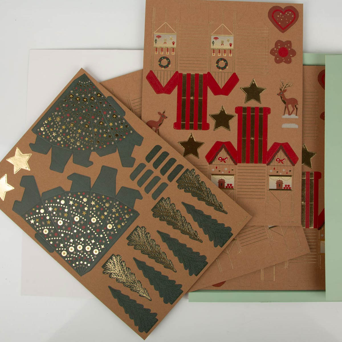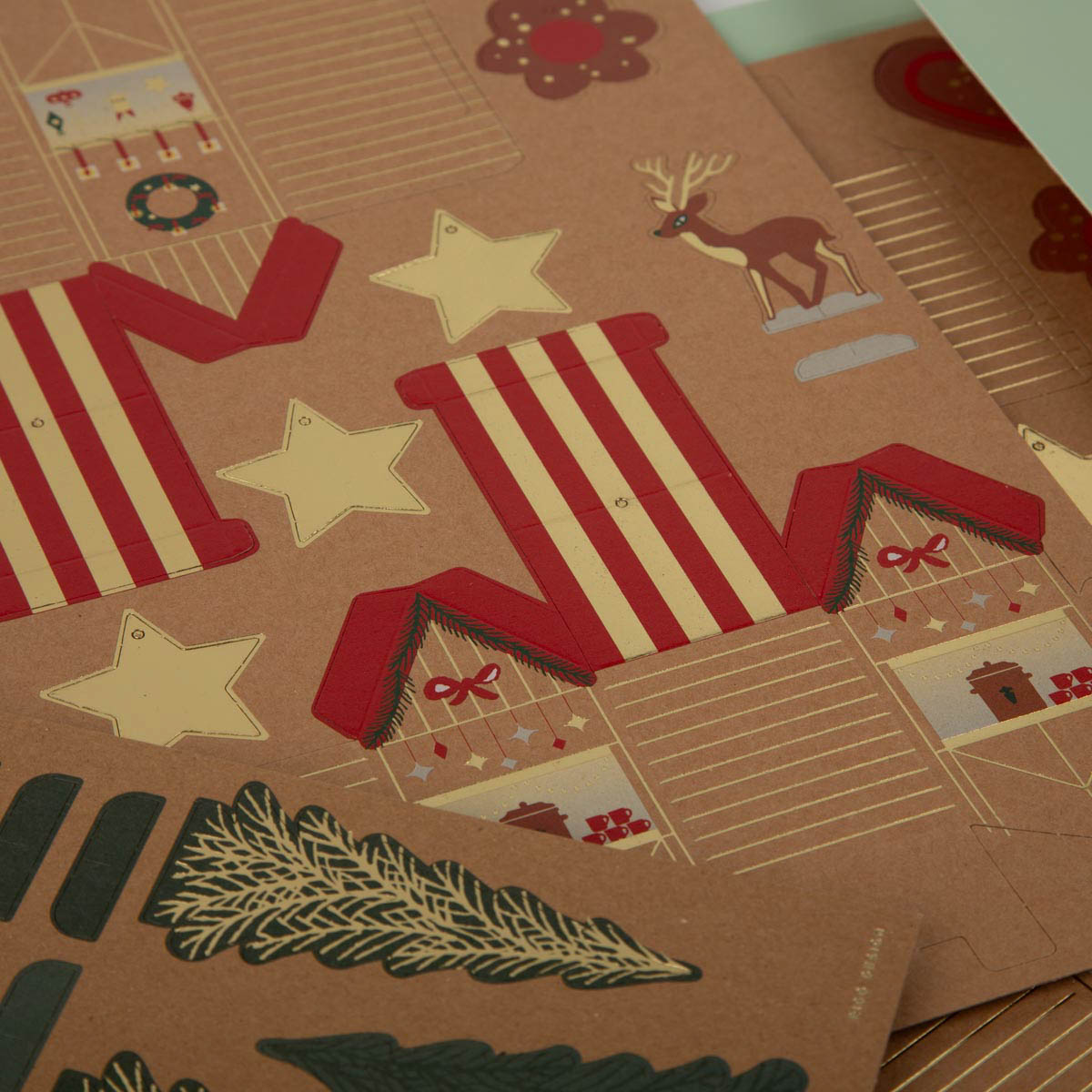 Komplettes Bastelset für einen DIY-Adventskalender aus Papier