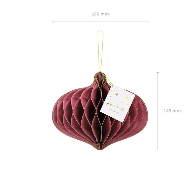 Dieser Weihnachtshänger in Honeycomb-Optik bringt festlichen Glanz in dein Zuhause. Der Papieranhänger in elegantem Weinrot mit feinem Goldrand sorgt für eine edle und warme Atmosphäre.