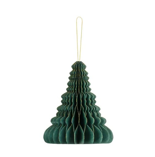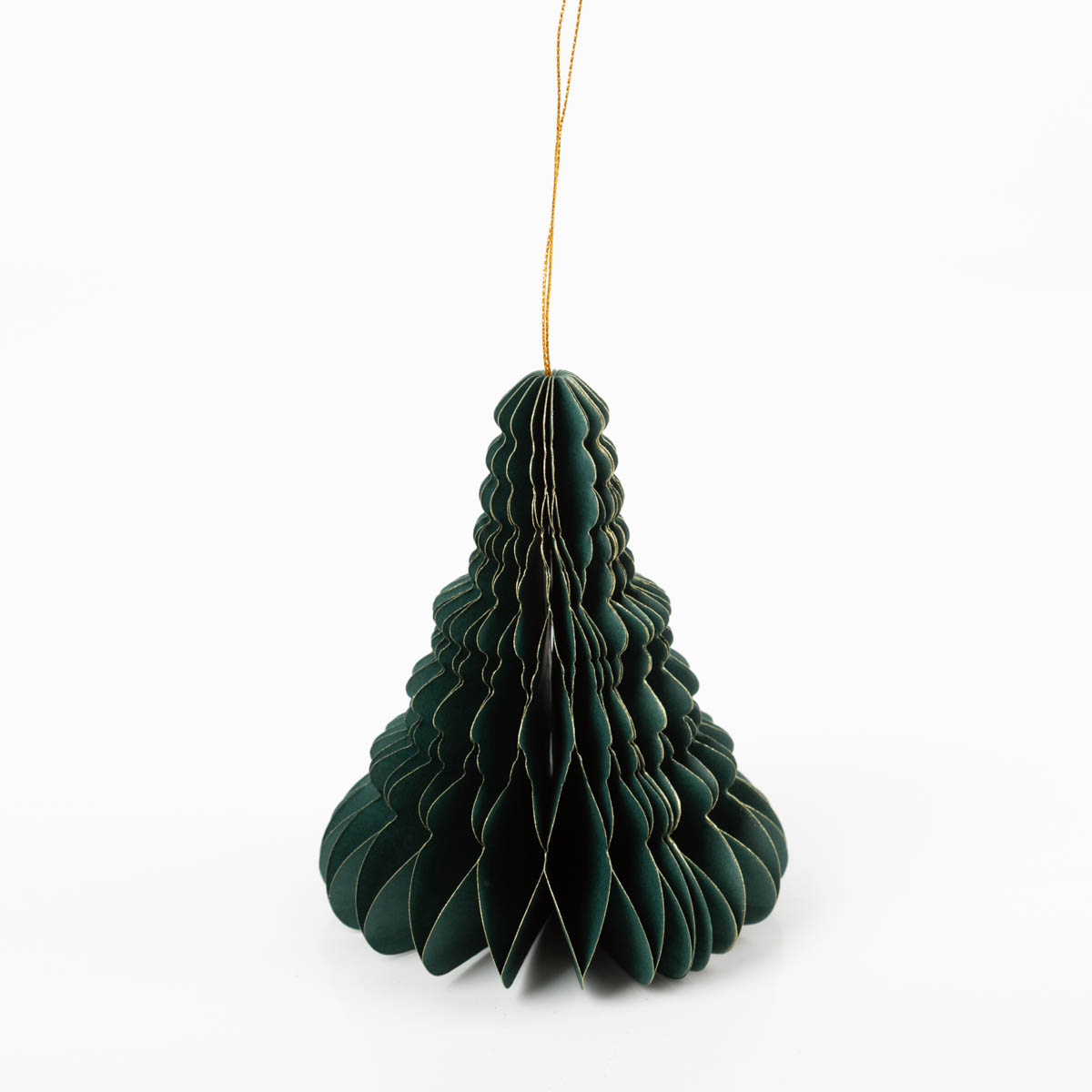 Weihnachtshänger Honeycomb Weihnachtsbaum, flaschengrün mit Goldrand, 10x15cm