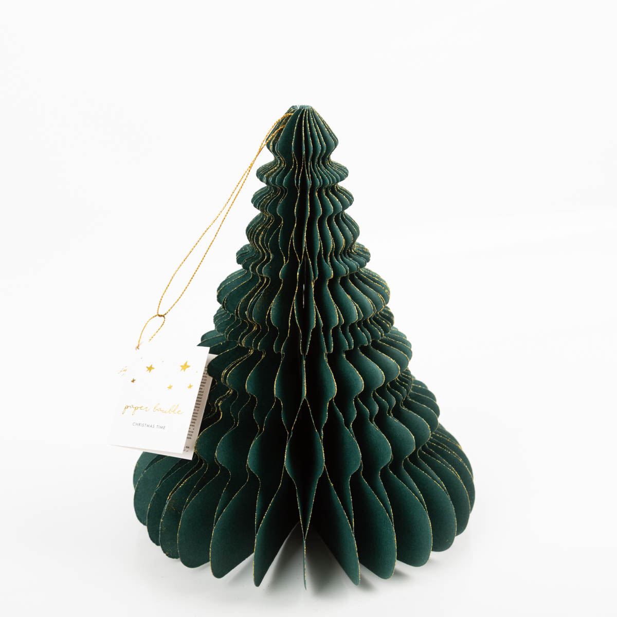 Dieser Weihnachtshänger in Honeycomb-Optik bringt festlichen Glanz in dein Zuhause. Der Papieranhänger in elegantem Flaschengrün mit feinem Goldrand sorgt für eine edle und warme Atmosphäre.