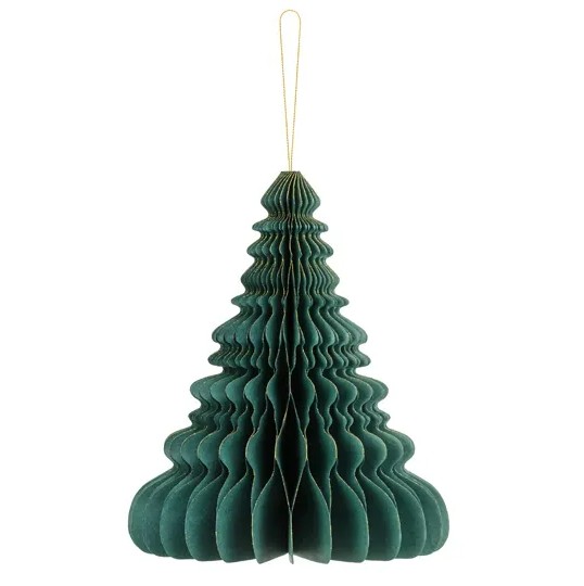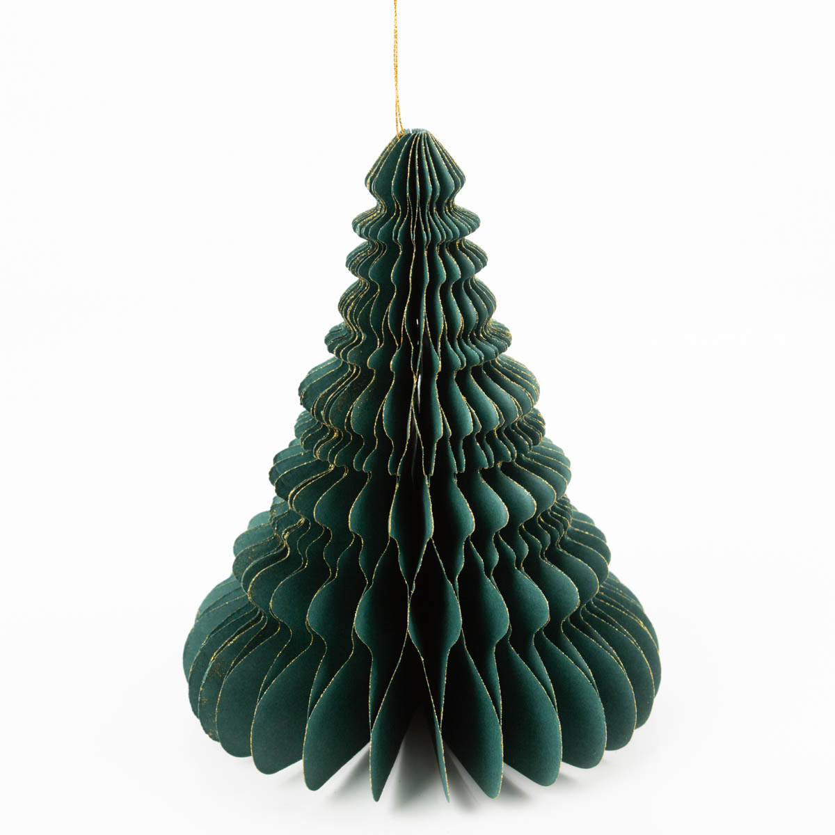 Weihnachtshänger Honeycomb Weihnachtsbaum, flaschengrün mit Goldrand, 20x24cm