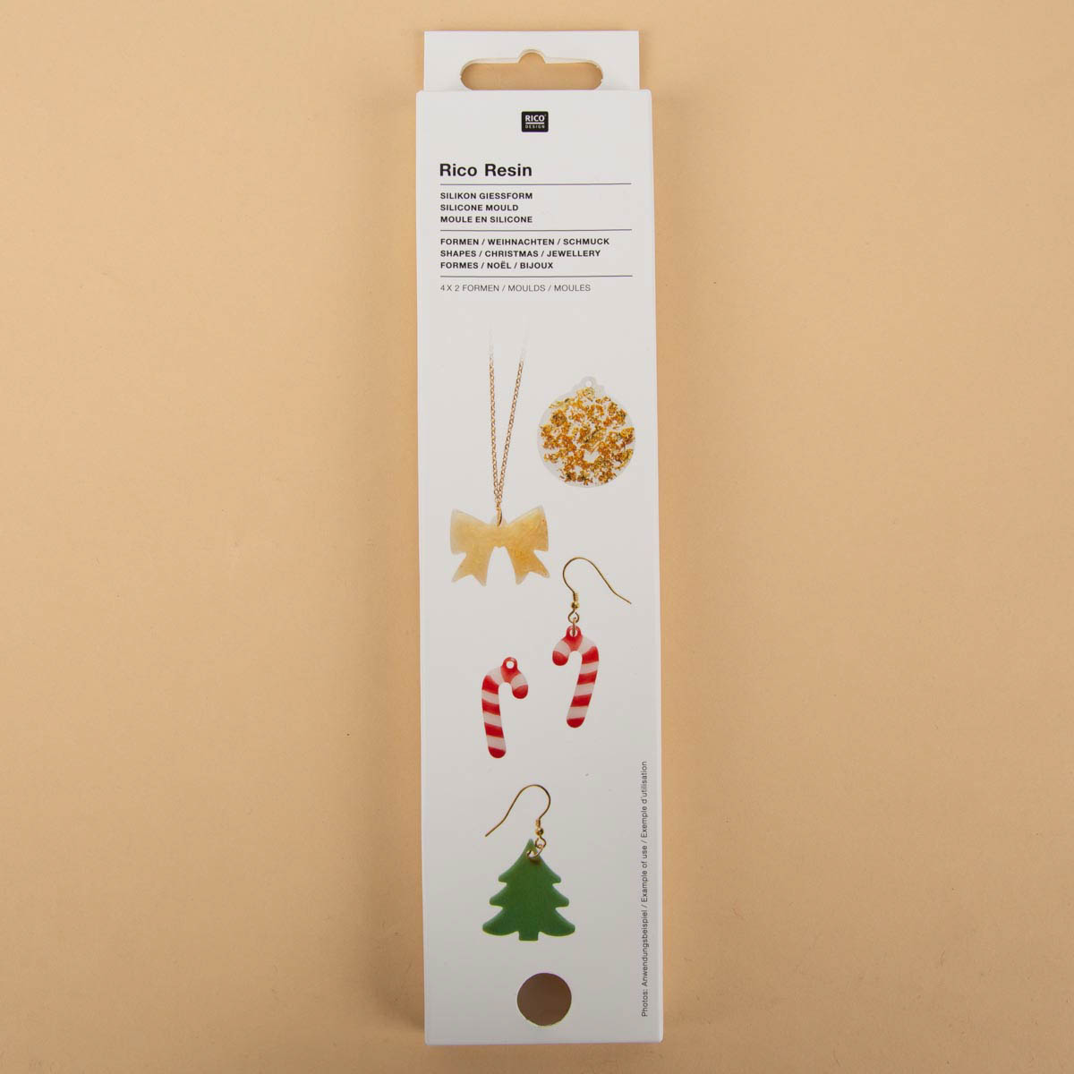 Mit der Silikon Gießform Mini Anhänger Weihnachten von Rico Design kannst du zauberhafte kleine Schmuckstücke und Dekorationen selbst gestalten. Die langlebige, flexible Form enthält vier weihnachtliche Motive – Kugel, Zuckerstab, Schleife und Weihnachtsbaum – perfekt für kreative Resin-, Gips- oder Betonprojekte.