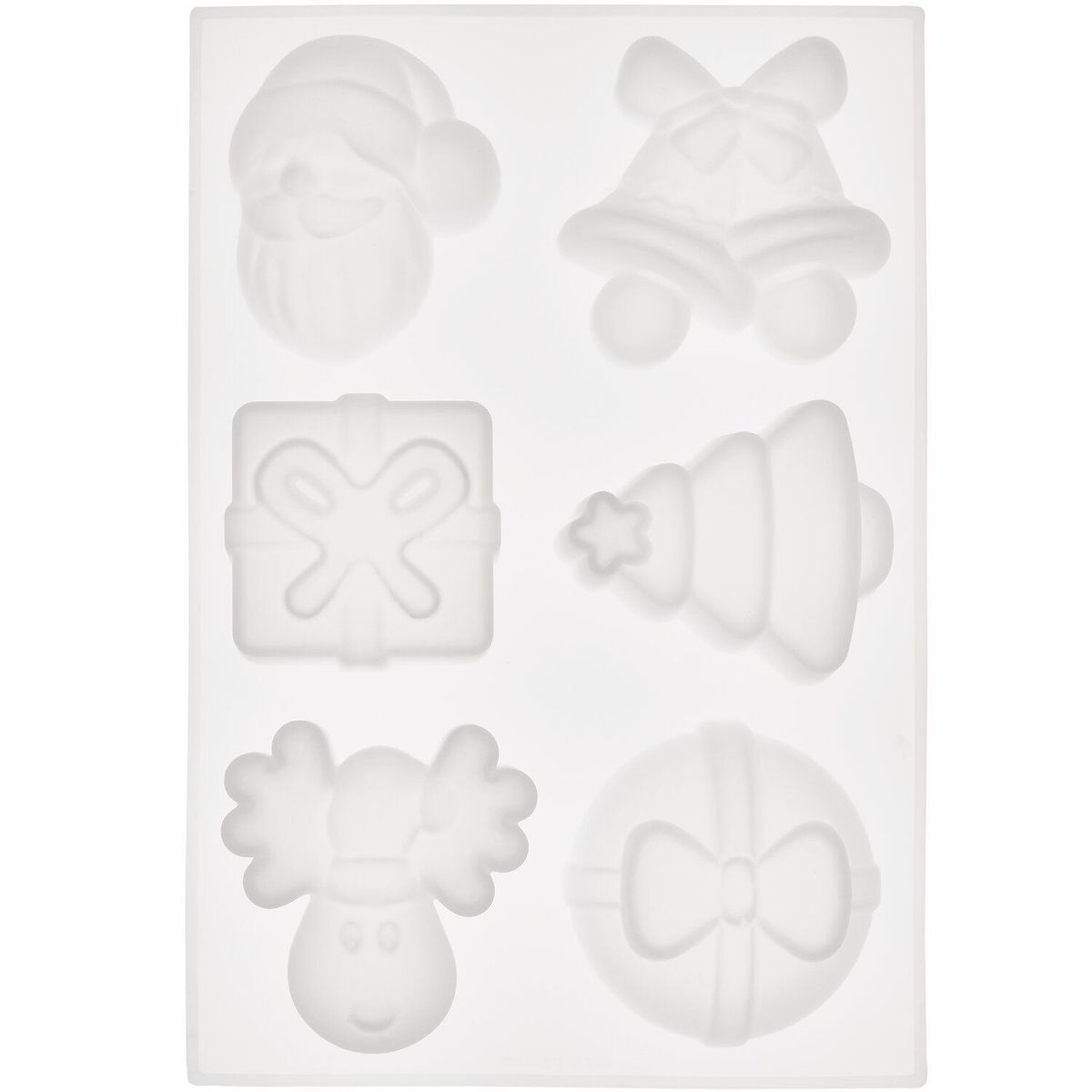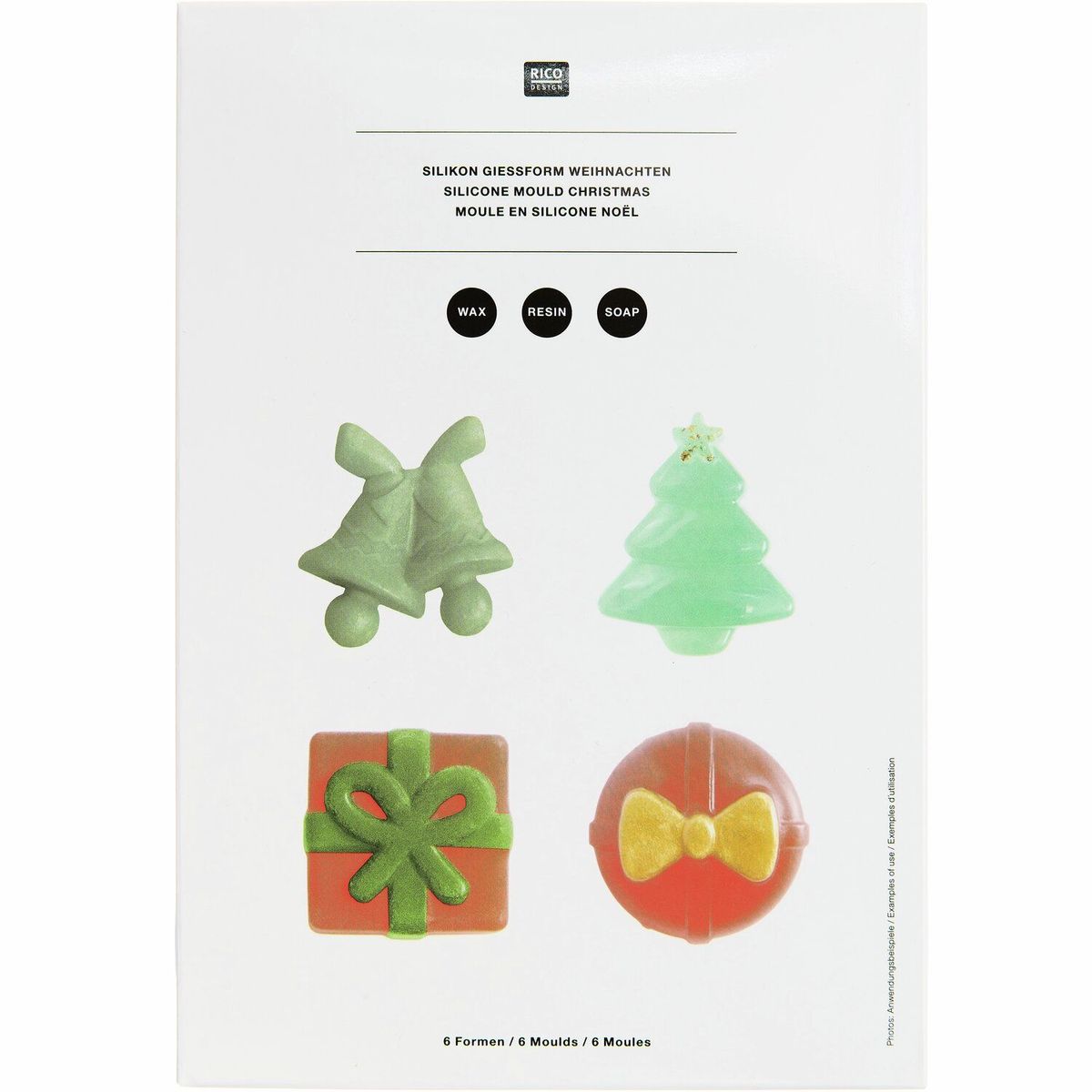 Mit der Silikon Gießform Weihnachtsformen von Rico Design gelingen dir im Handumdrehen wunderschöne, festliche Kreationen aus Resin, Seife oder Wachs. Die Form enthält sechs beliebte Weihnachtsmotive – Weihnachtsmann, Glocken, Geschenk, Tannenbaum, Rentier und Weihnachtskugel – ideal für kreative DIY-Projekte in der Adventszeit.