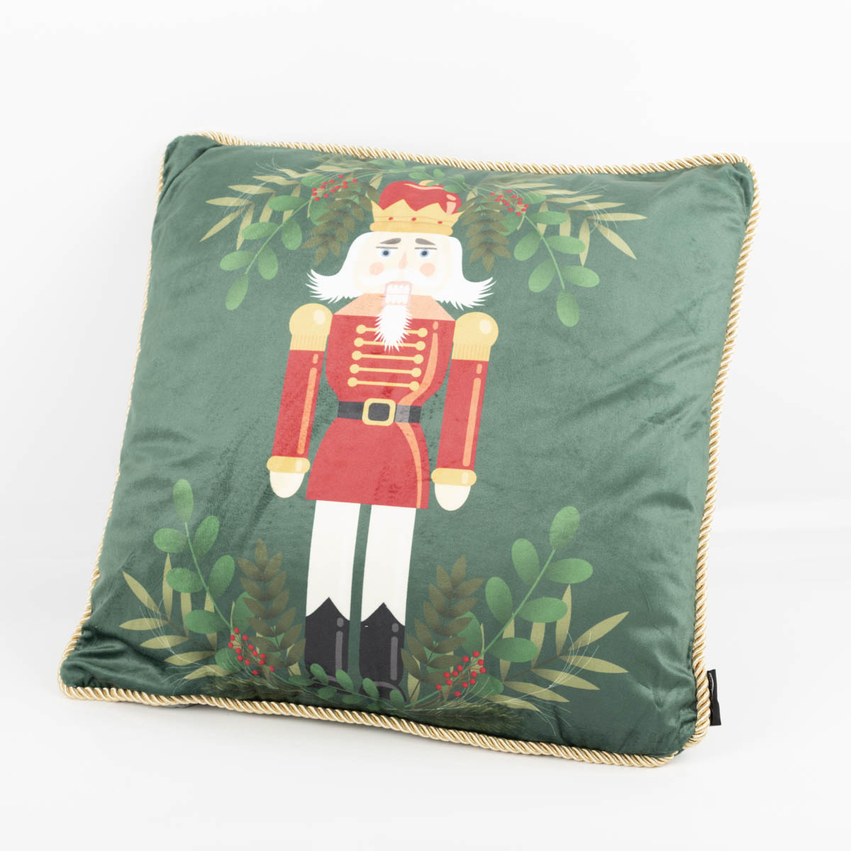 Dekokissen Nutcracker grün mit Kordelumrandung Weihnachtskissen 45x45cm