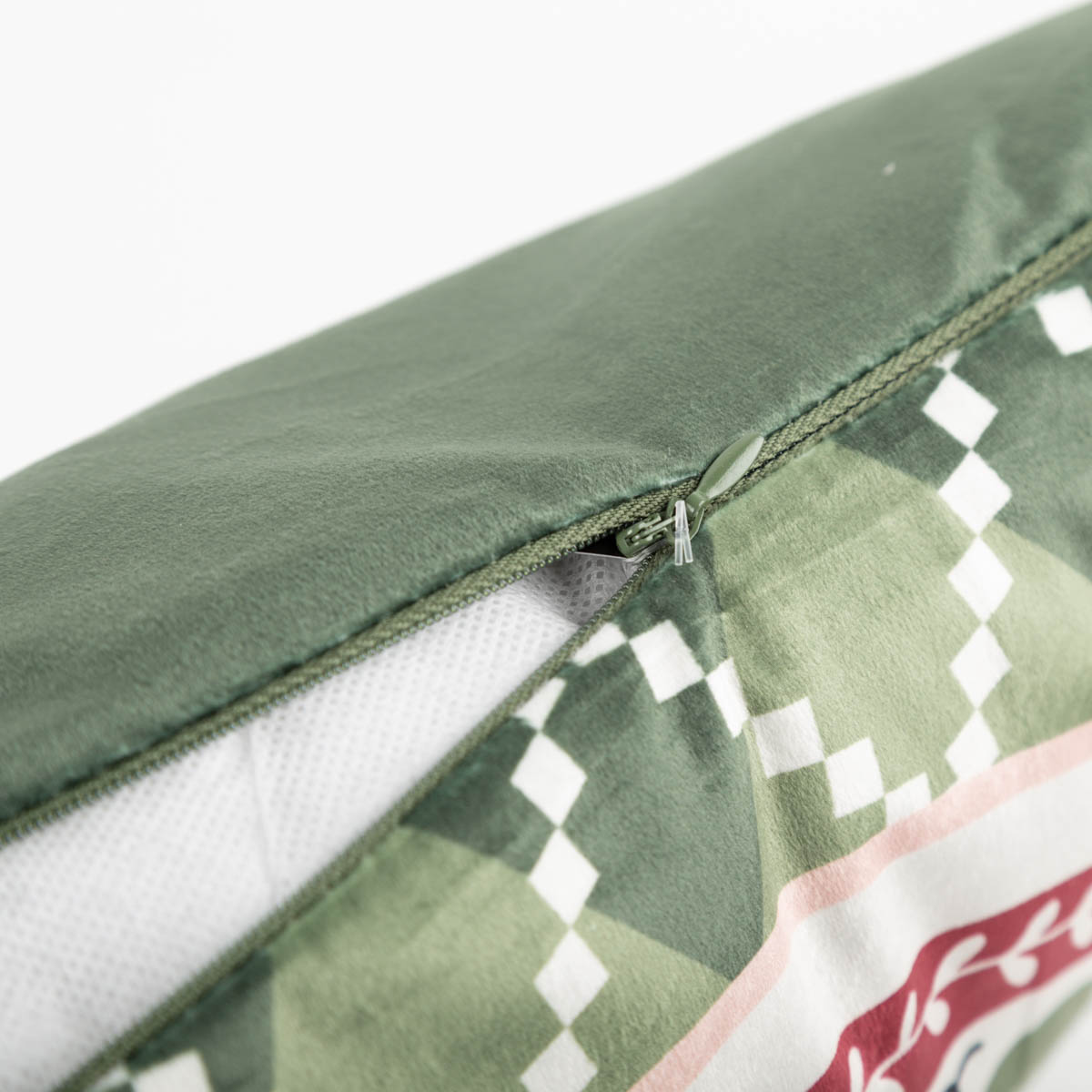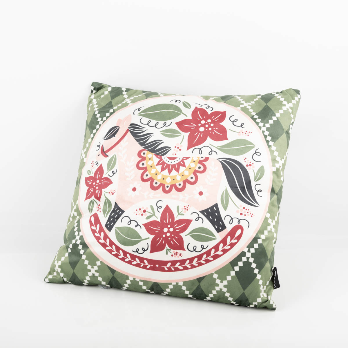 Dekokissen Schaukelpferd Raute grün 45x45cm – weihnachtliches Highlight