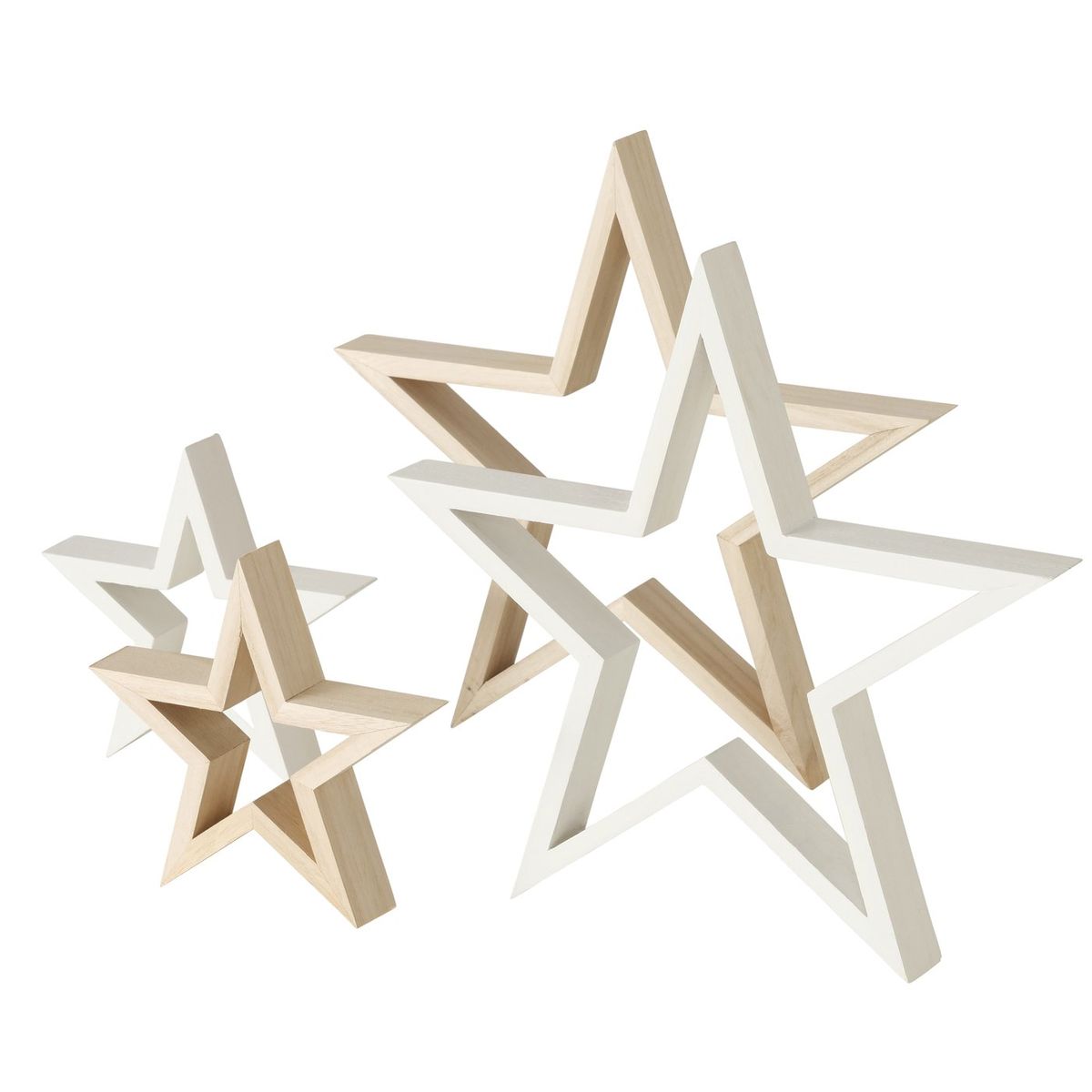 Weihnachtssterne aus Holz 2er Set weiß oder natur16 und 29cm Durchmesser von Boltze Home