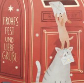 Die Doppelkarte „Frohes Fest und Liebe Grüße“ von Grafik Werkstatt verbindet ein charmantes Motiv mit edler Goldveredelung. Katze und Hund werfen ihre Weihnachtspost in den Briefkasten, darüber steht der Gruß „Frohes Fest und Liebe Grüße“ – ein warmes Motiv, das Jung und Alt begeistert.