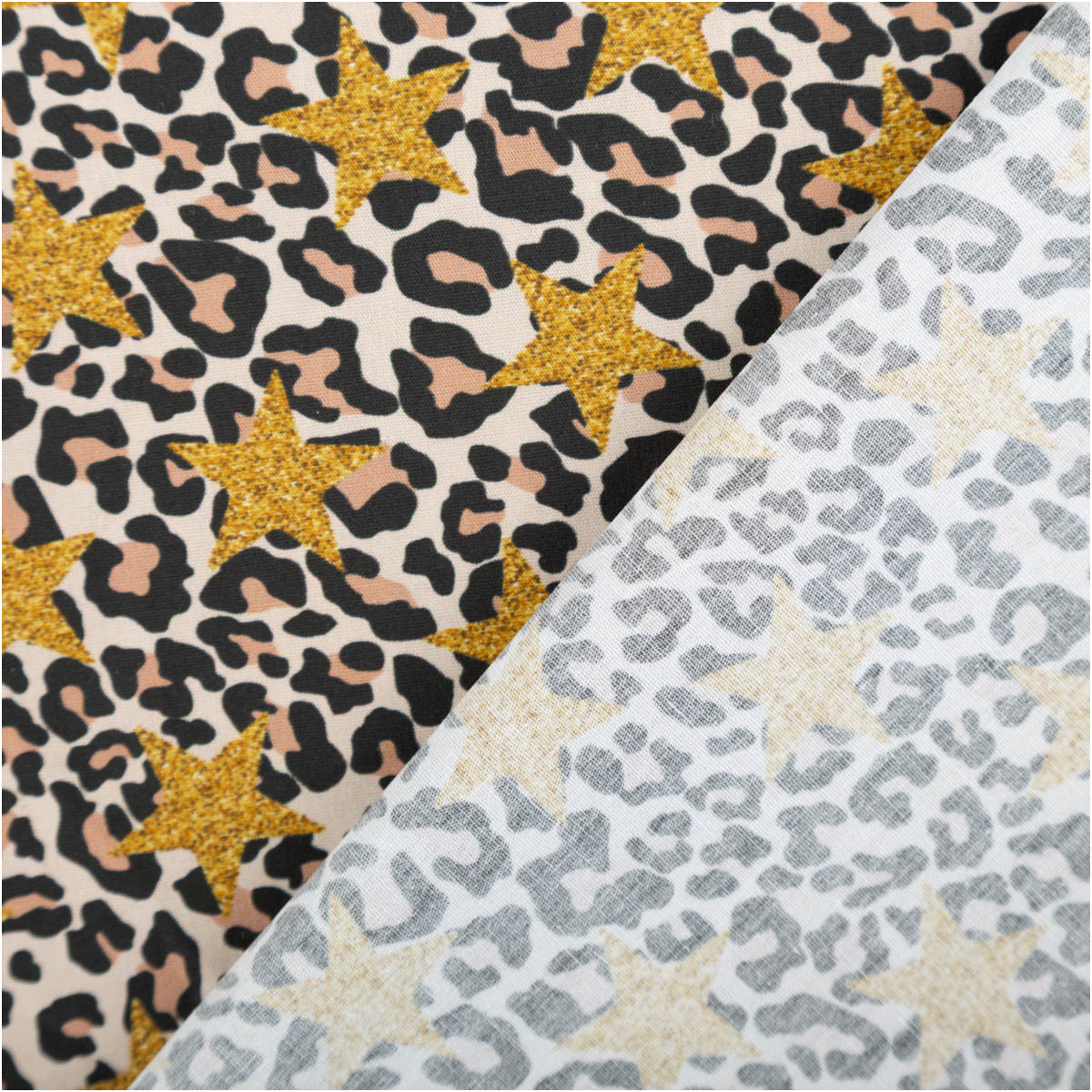 Einzigartiges Design: Leo-Muster kombiniert mit goldfarbenen Glitzer-Sternen für trendige Nähideen