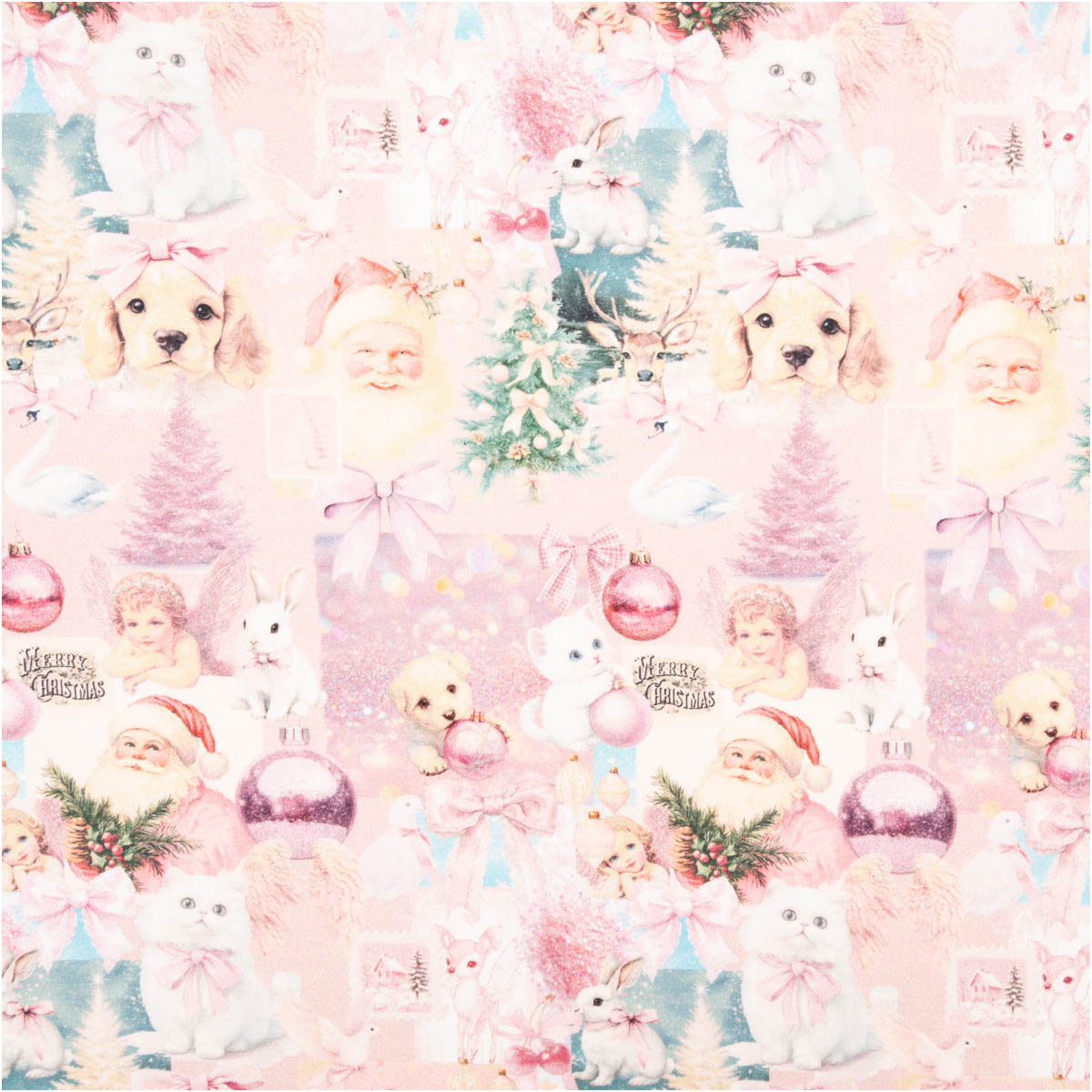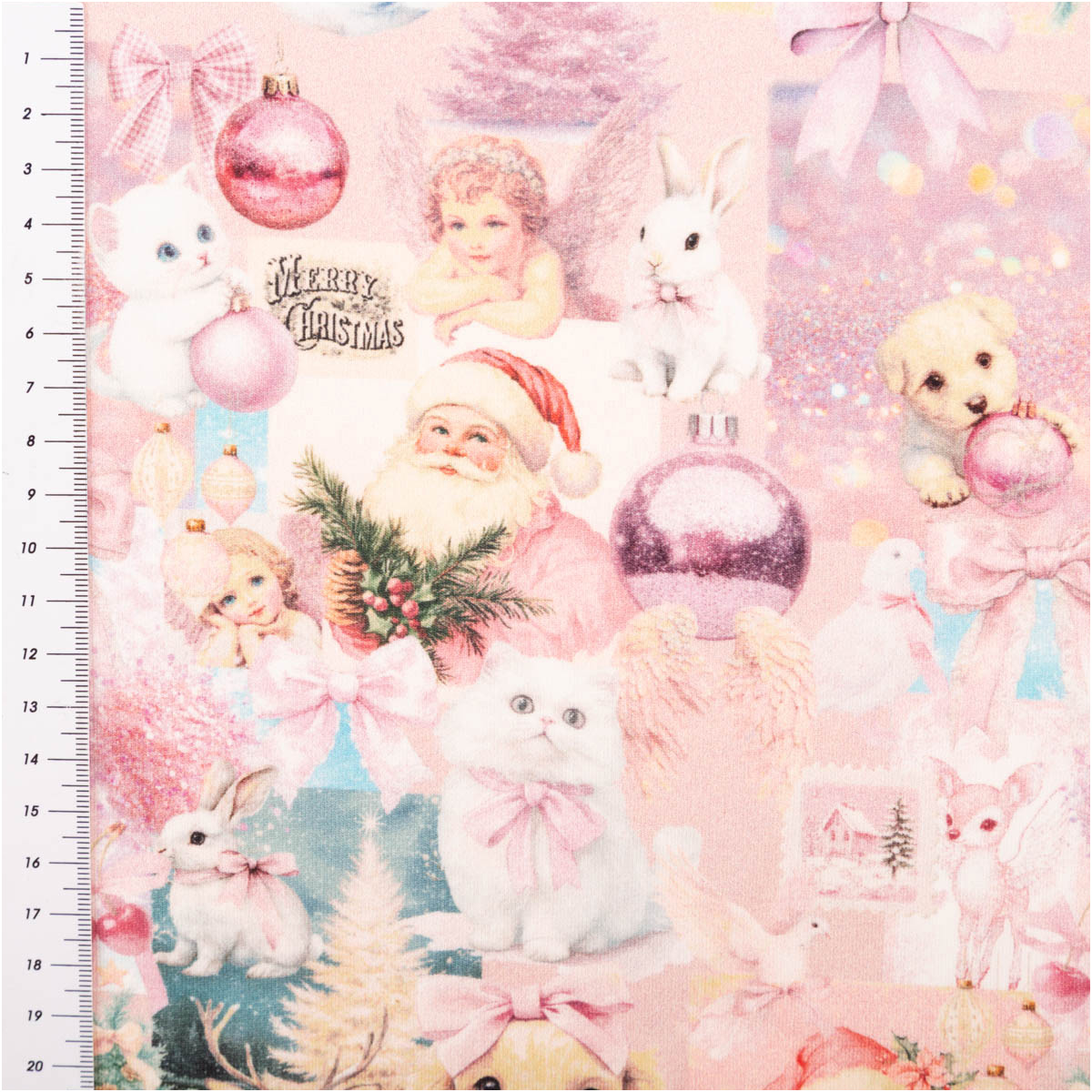 French Terry Stoff Baumwolle Weihnachtsstoff Digitaldruck Sweet Xmas rosa 1,50 m Breite