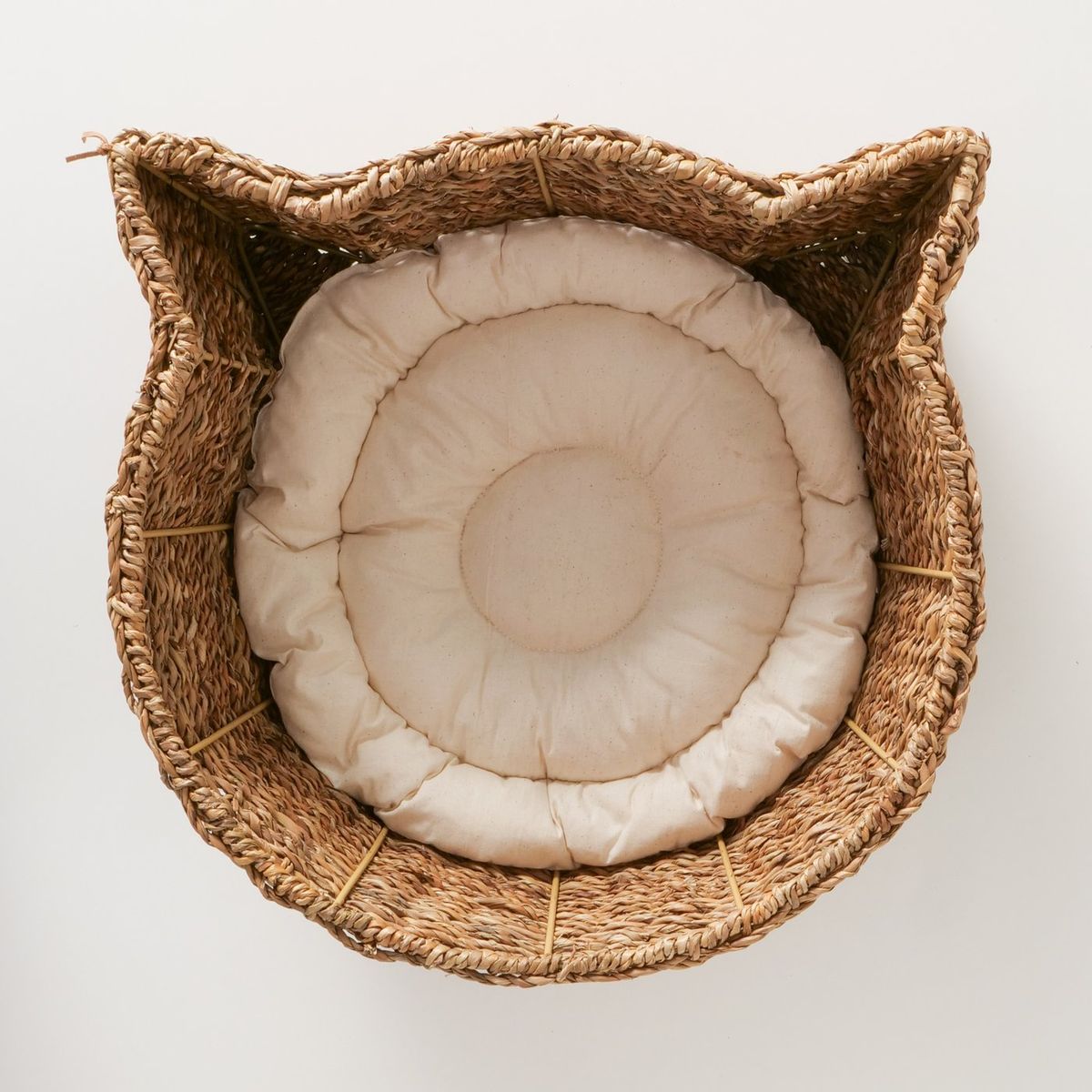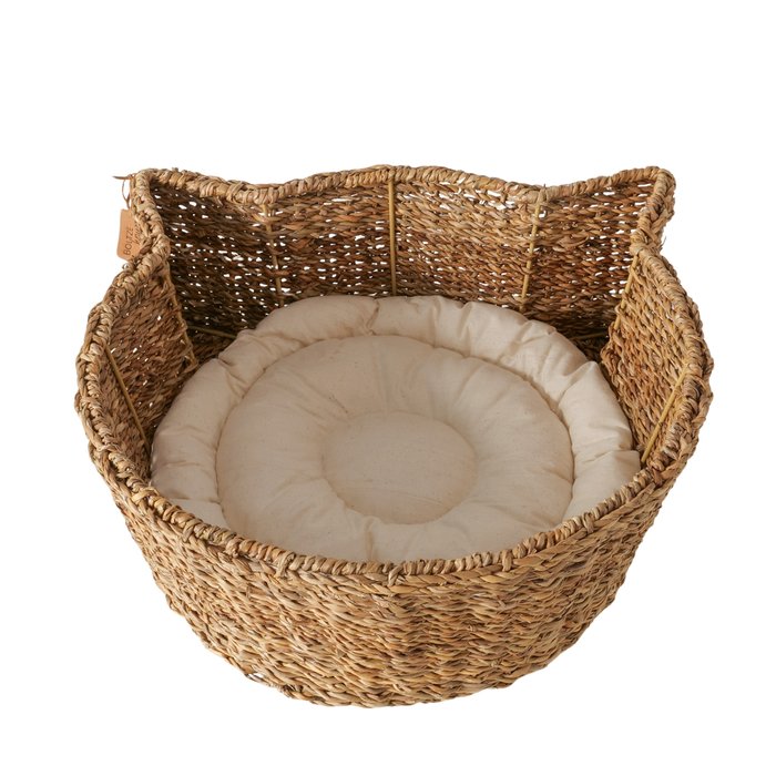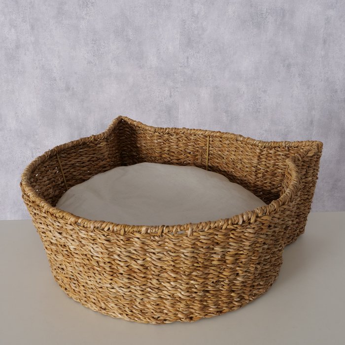 Du suchst einen gemütlichen Schlafplatz für deine Katze? Dieser handgewebte Korb aus Naturfasern bietet mit seinem hohen Rand Sicherheit und Geborgenheit. Das weiche Kissen ist herausnehmbar – perfekt zum Lüften und Reinigen. Dank der Ohrenform wirkt der Korb charmant und passt in viele Wohnstile.