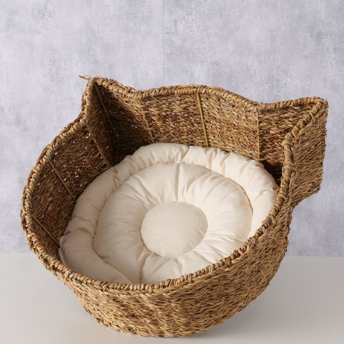 Katzenkorb handgewebt mit Kissen 44×50×18 cm von Boltze – gemütlicher Rückzugsort für Katzen
