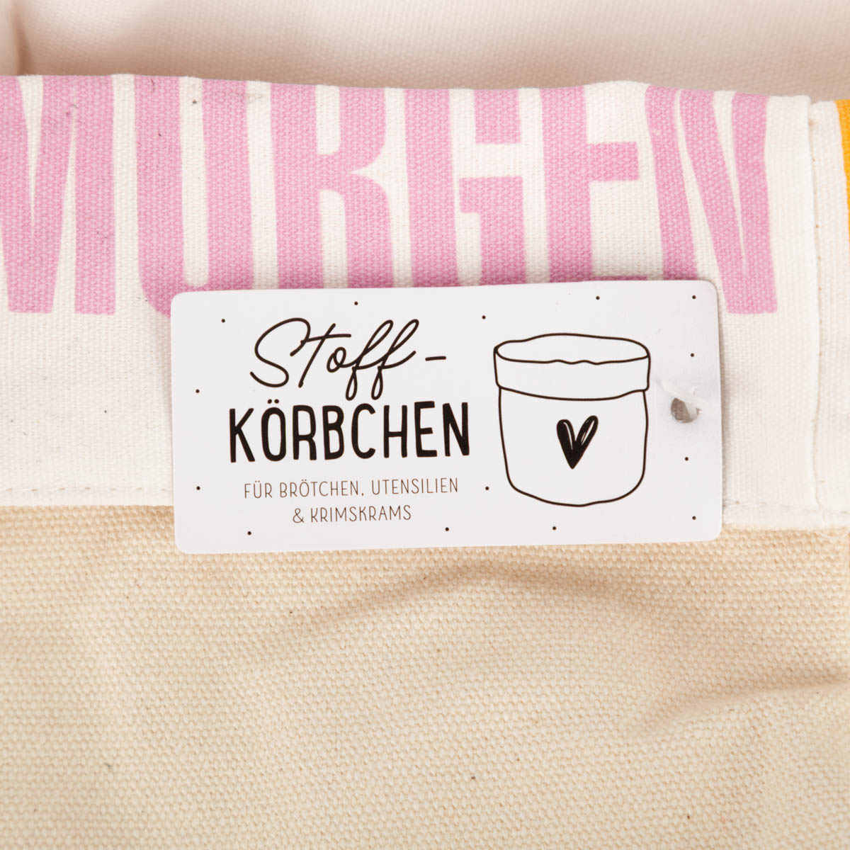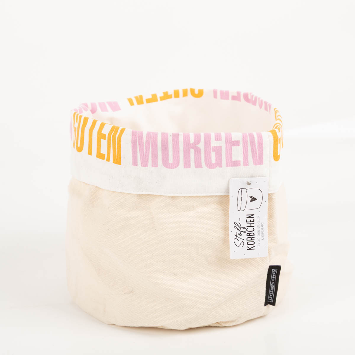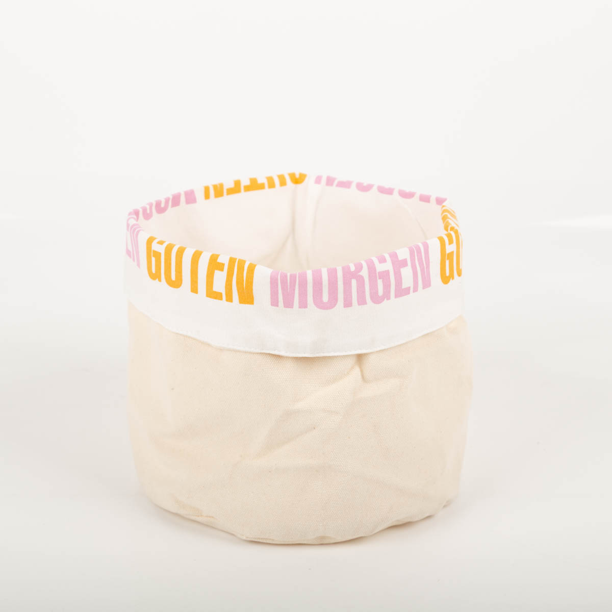 Stoff-Körbchen "Guten Morgen" aus Baumwolle natur rosa gelb 16x20cm von Grafik Werkstatt