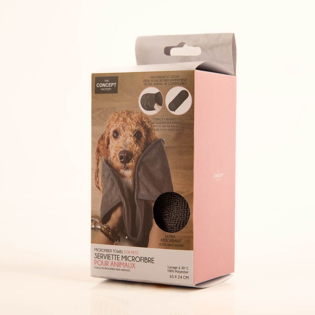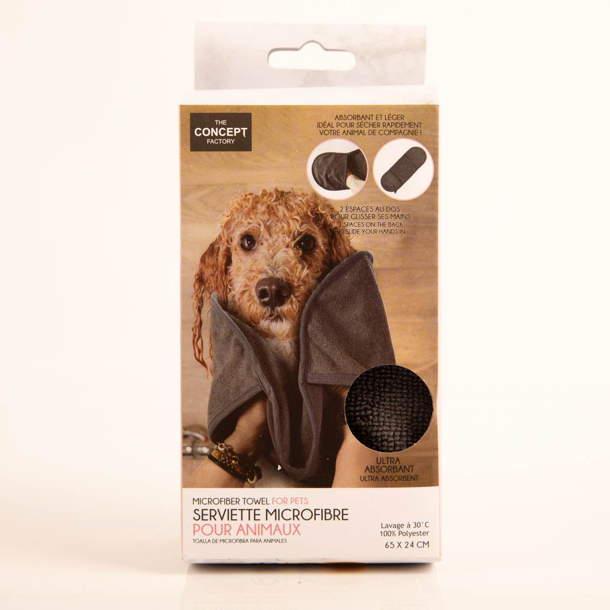 Besonders praktisch: Das Tuch besitzt zwei integrierte Handfächer, die dir optimalen Halt geben. So hast du dein Tier sicher im Griff – auch wenn es unruhig ist oder sich schütteln möchte. Mit seiner kompakten Größe von 65x24 cm eignet sich das Tuch perfekt für Hunde und Katzen aller Größen und ist ideal für unterwegs, im Auto oder auf Reisen.