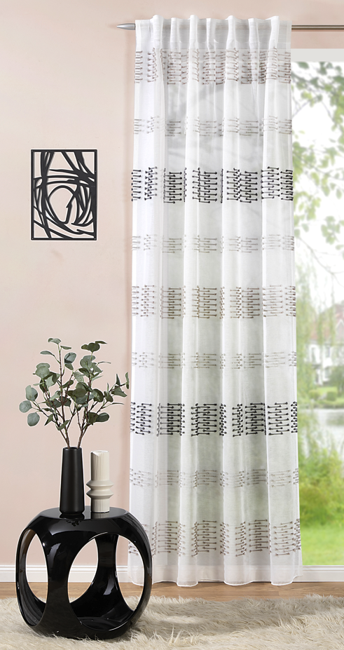Gardine Schlaufenbandschal Scherli Streifen transparent weiß grau 140x245cm (BxH)