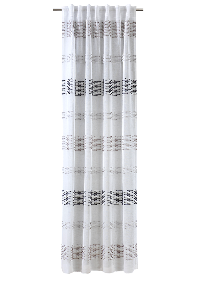 | Sonstige Details | Scherli-Effekte, mit Schlaufenband, Aufhängung an Gardinenstange oder Gardinenschiene |
